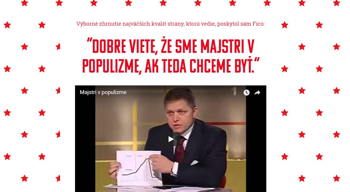 For instance, this can't be said about another campaign against Fico which started SaS at the same time. Although they attempted to create some kind of comics meme, the message is boring and complicated. The whole campaign appears as a crampy and poor hate. On the contrary, the www.pozorohudnachrbtica.sk with its 175 000 views is, in my opinion, a successful political satire. Therefore I'm sorry to say that it was a one-shot action. It said what it was supposed to say and it fell asleep without being updated. It's a pity because this kind of humour is disappearing from our media.