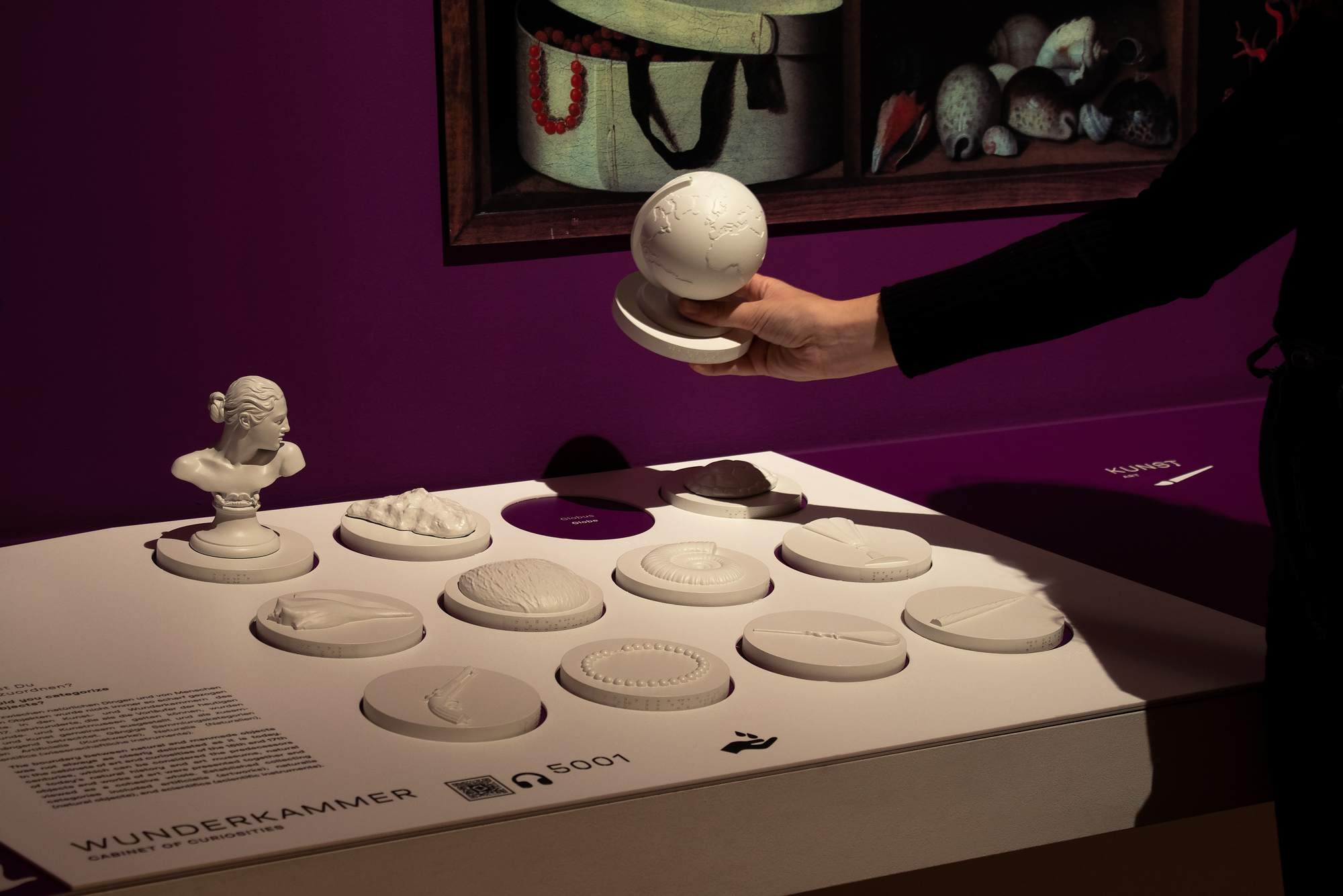 author: Tactile StudioInteractive tactile station that allows visitors to build their own cabinet of curiosities, part of the multi-sensory trail in the temporary exhibition “Terrible Beauty: Elephant – Human – Ivory”, Humboldt Forum, Berlin