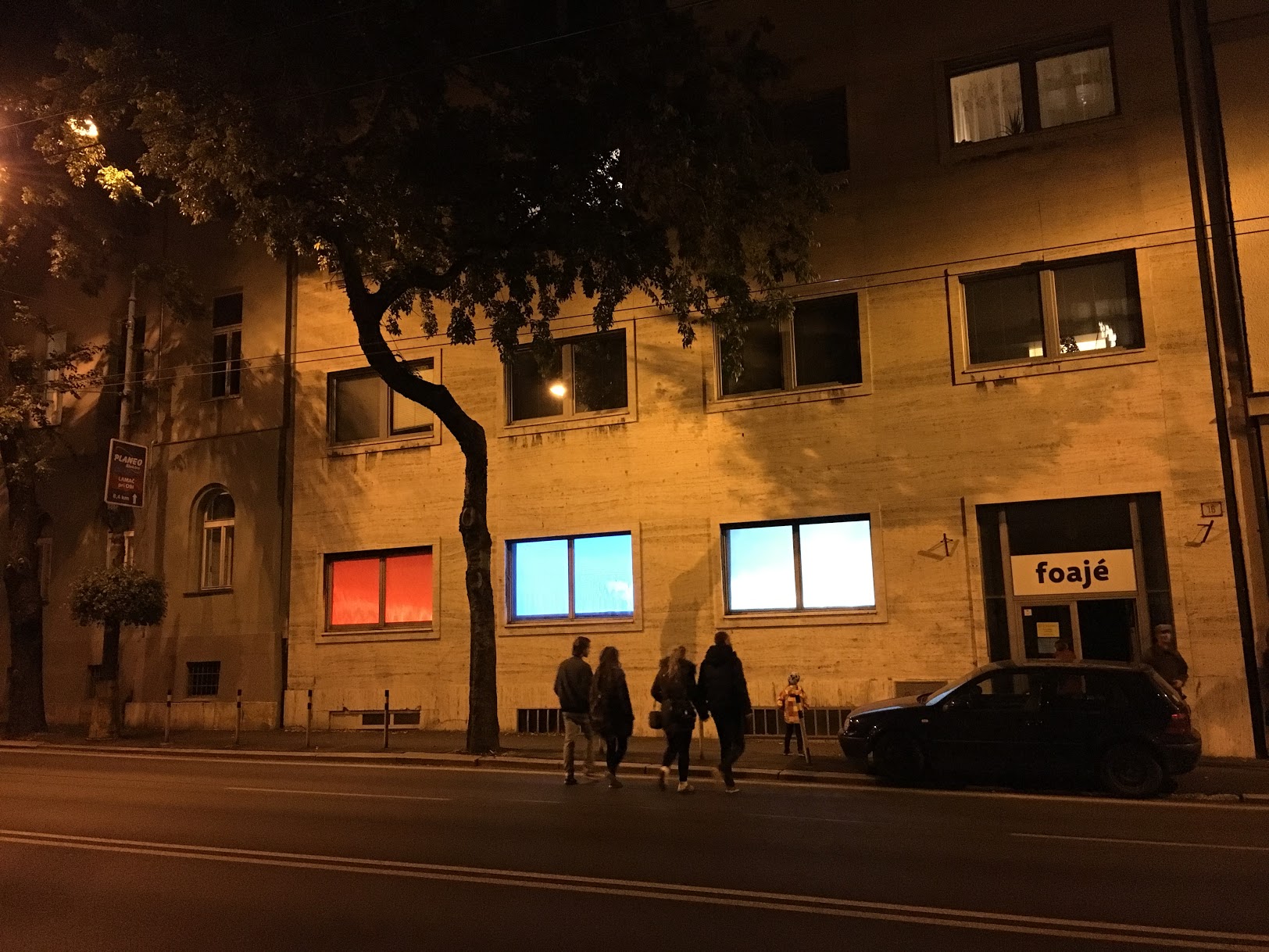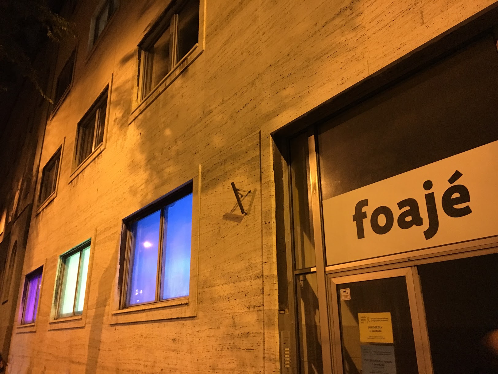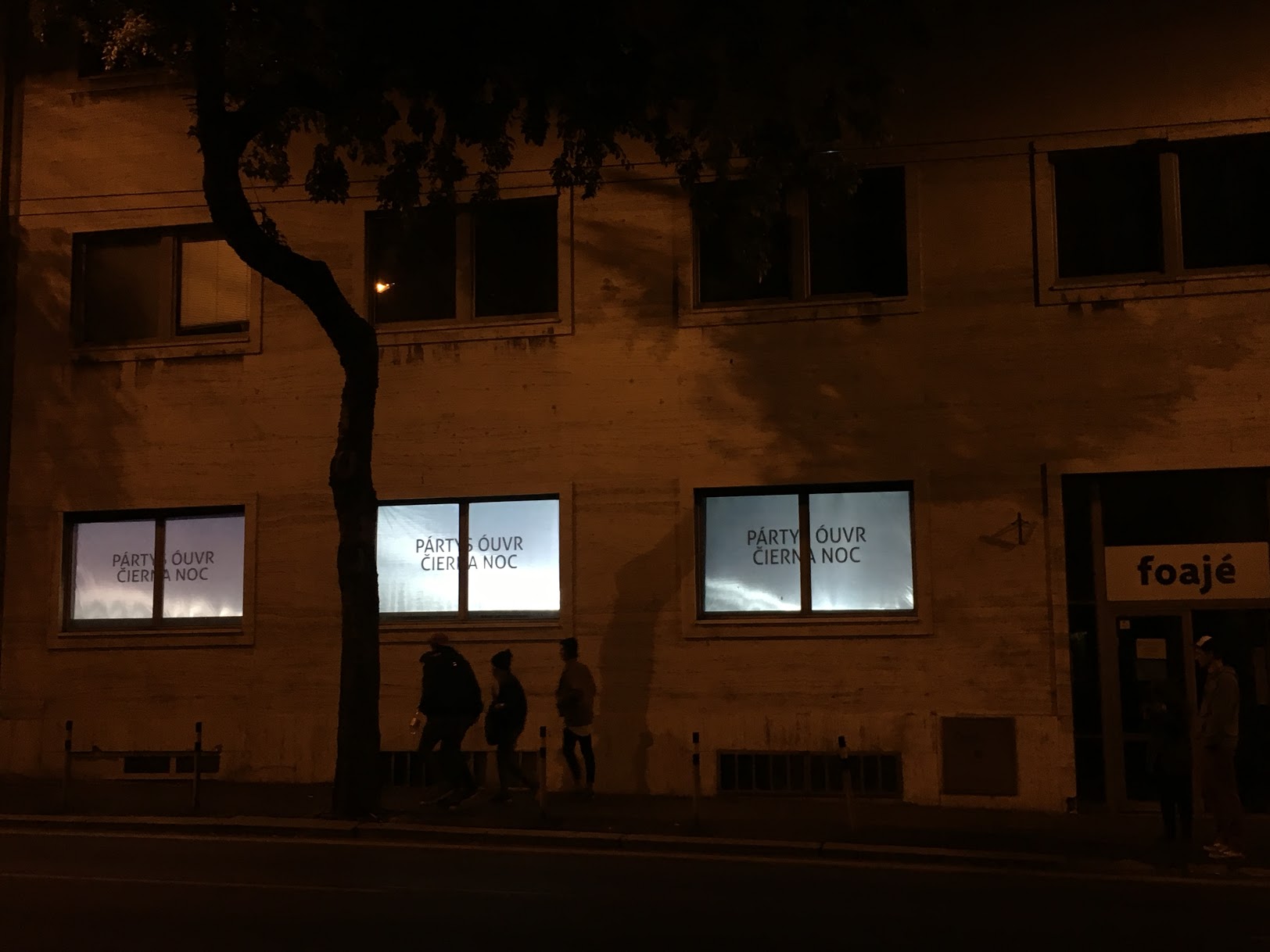 Critical window is original format of short critical visual reflections made by graphic designers and projected onto the street from three windows of the culture and co-work space called Foajé on Štefánikova street in Bratislava. They used to reflect the current critical political or social issues that resonate in Slovakia. Sometimes they are related with the public events organized inside the Foaje showing the personal critical attitude of their authors towards certain topics of these events.