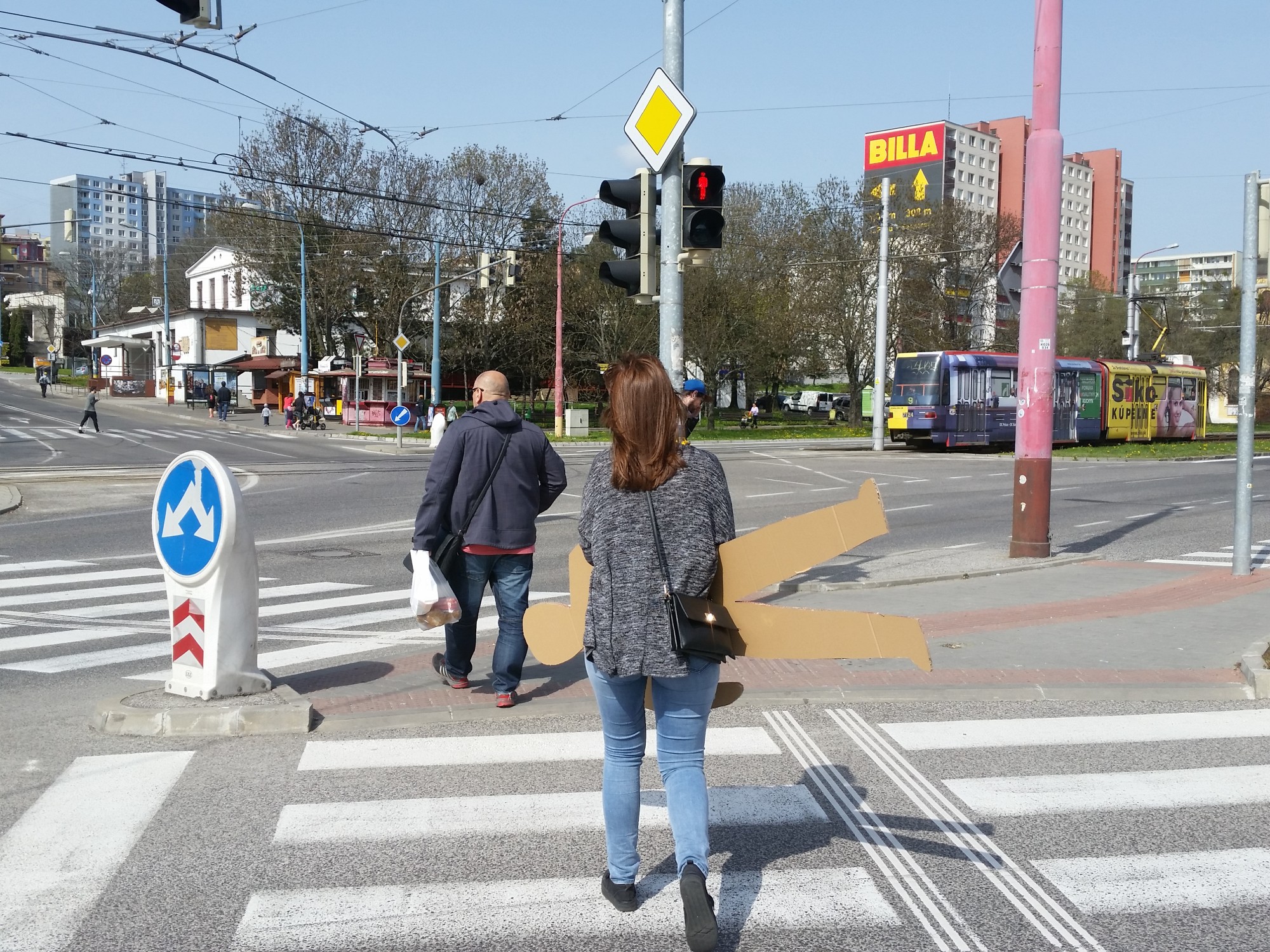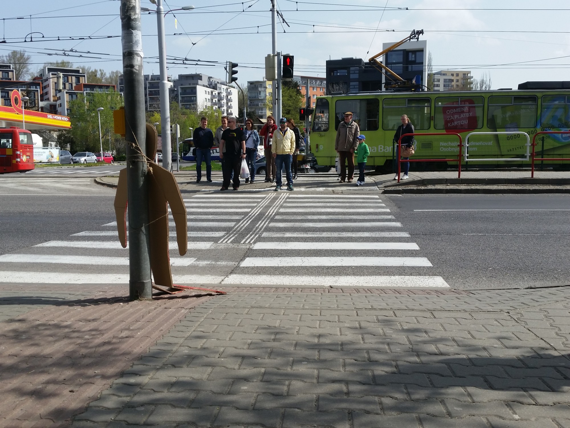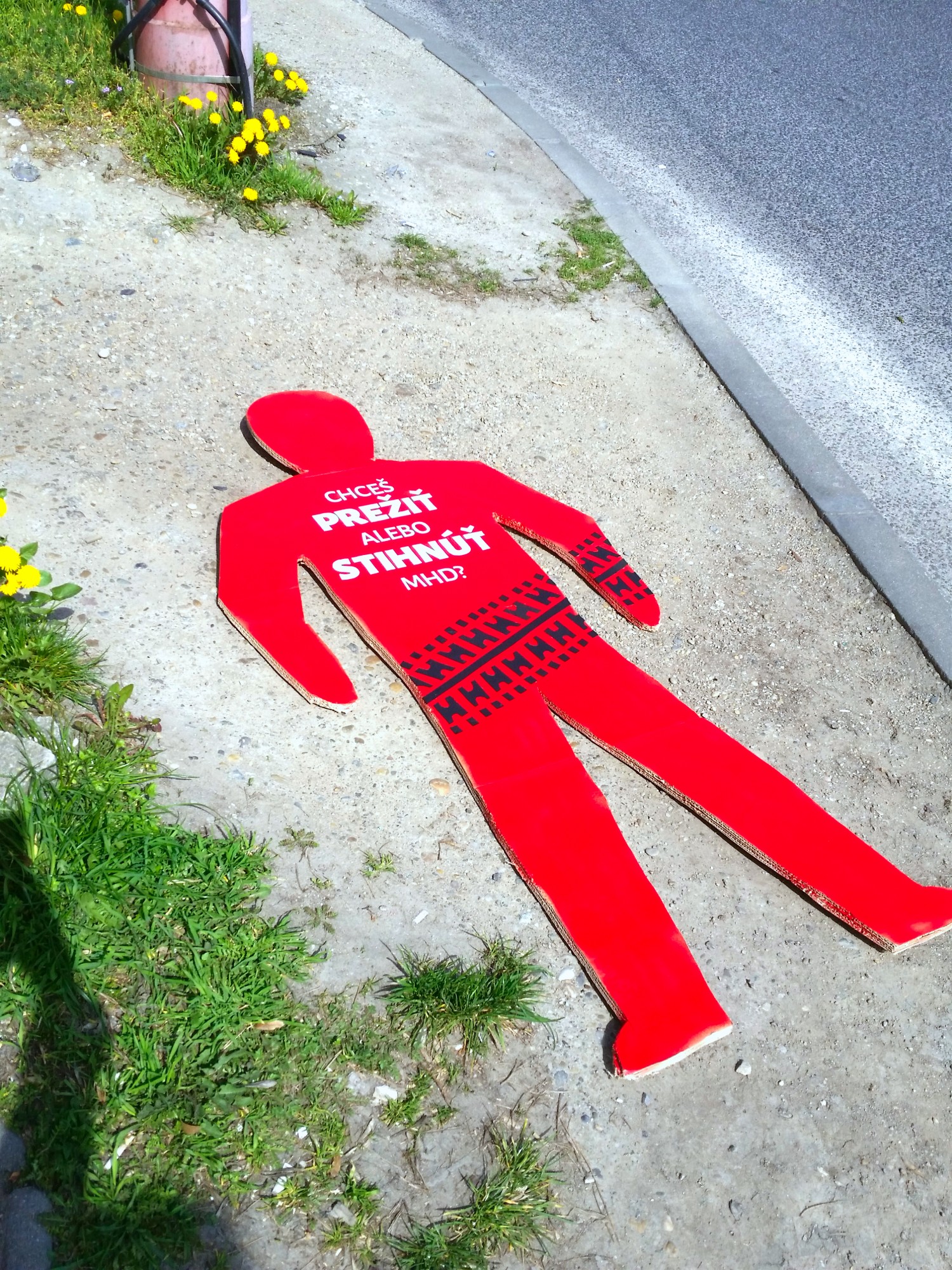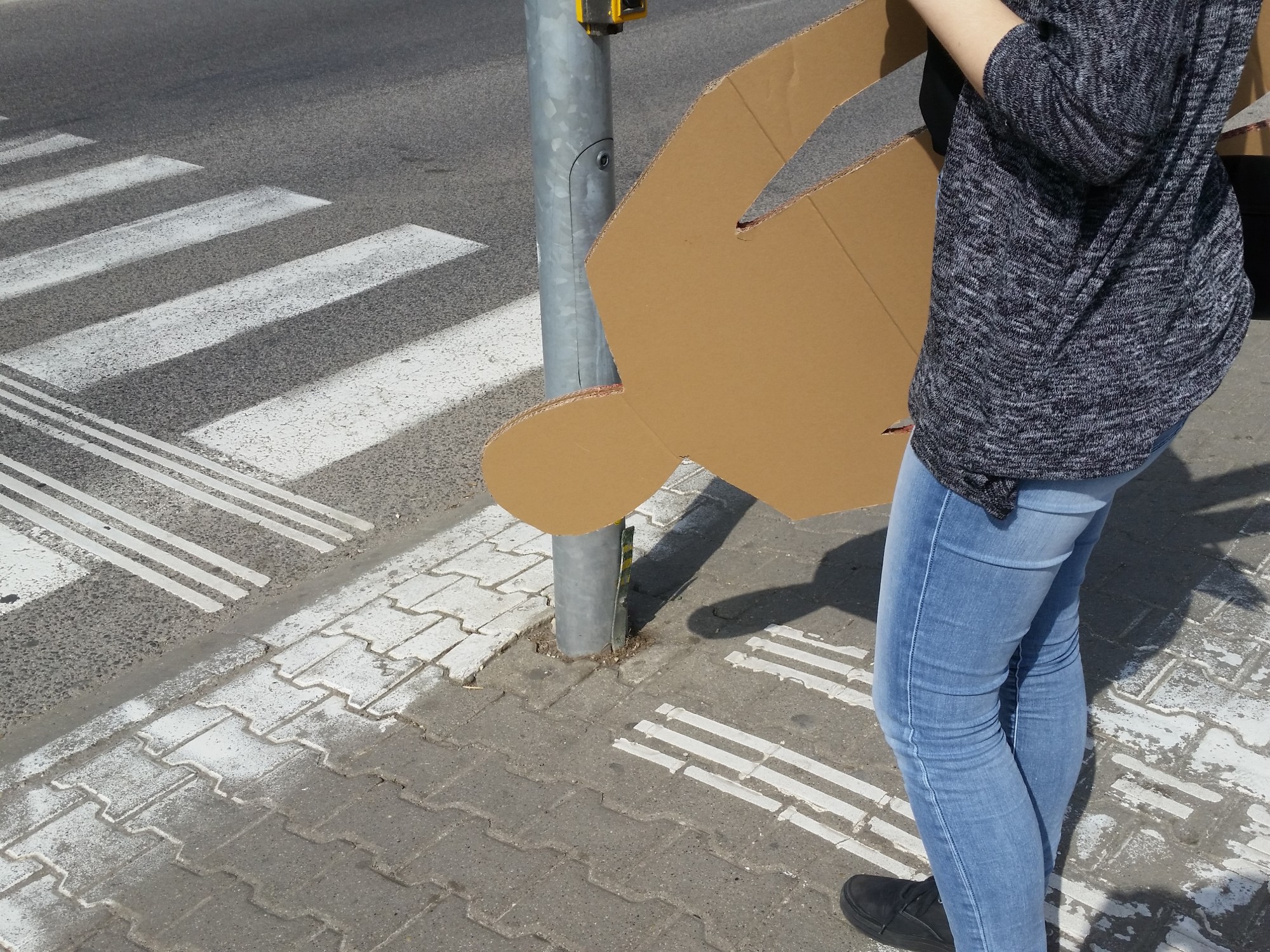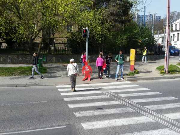 Therefore I decided to respond to this situation and I used red figure from the traffic light that people ignore as a sign and a warning. To make it more visible and real looking I did it the size of a man. The puppet was wearing a very direct and brutal message "Do you want to live or catch public transport?". Ii was installed on different locations within the intersection and in the field of vision of people waiting on the footpath, but people nonetheless went red.