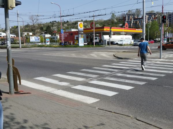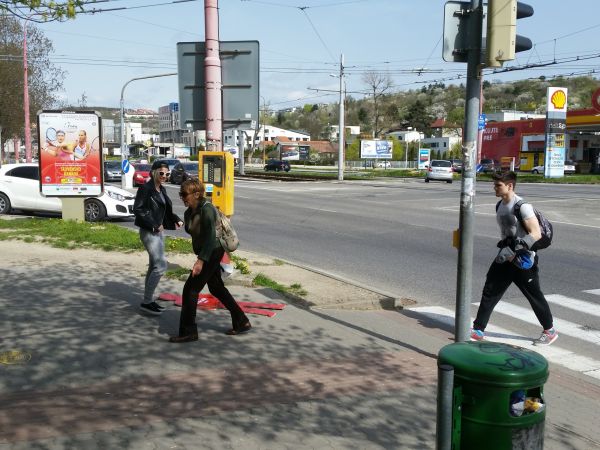 Molecova intersection is a complicated traffic junction. It is a spot where a dual roads from Karlova Ves and Dlhé diely district in Bratislava get together, a place where trolleybuses, busses and trams stop. Especially during the morning and afternoon rush hour, this area is very busy. Pedestrians who transfer between public transport stops must pass through the intersection, the green traffic light is too short, so they often run across the road between the cars to catch a pubic transport service.