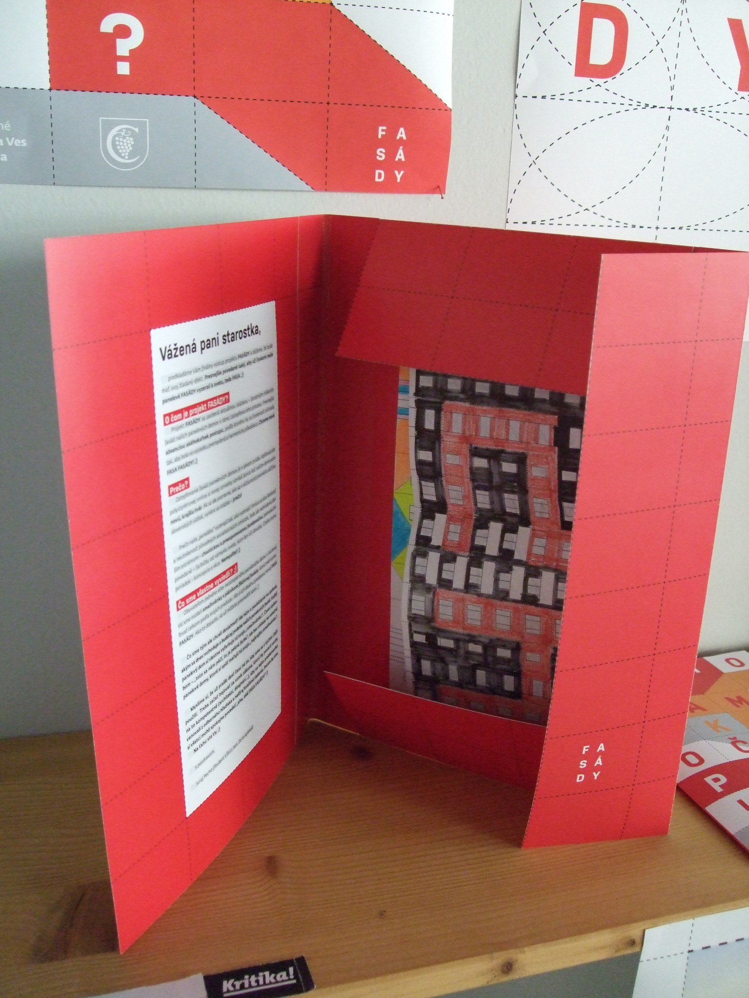 After the participation of my neighbours I collected the outputs /coloured plans/. It was a colorful collection of several dozen crazy paintings, some of them with children style, some of them with flower patterns or typography. I packed the whole collection and sent to the municipal office in Karlova Ves. The package contained also a letter with a text informing the mayor of the city about the intention of my project. I was summarizing the whole event and its possible consequences in the future. After all, how would it look like if people really designed the facades by themselves in such a manner? Hopefully my shipment to the town hall did not go unnoticed.