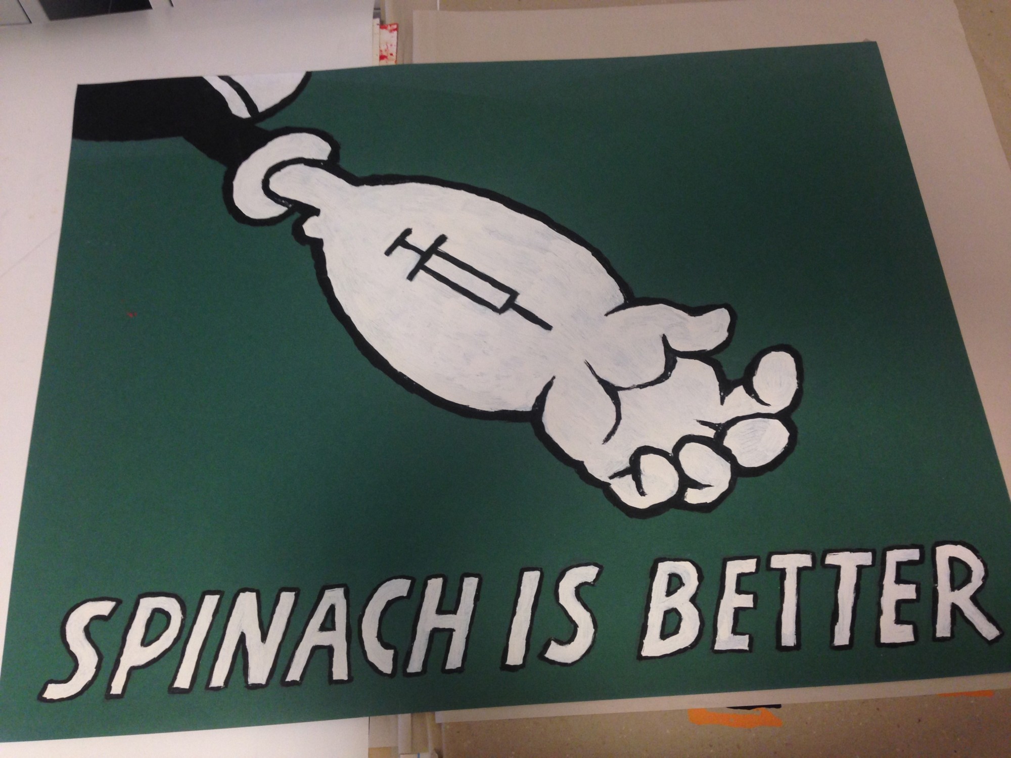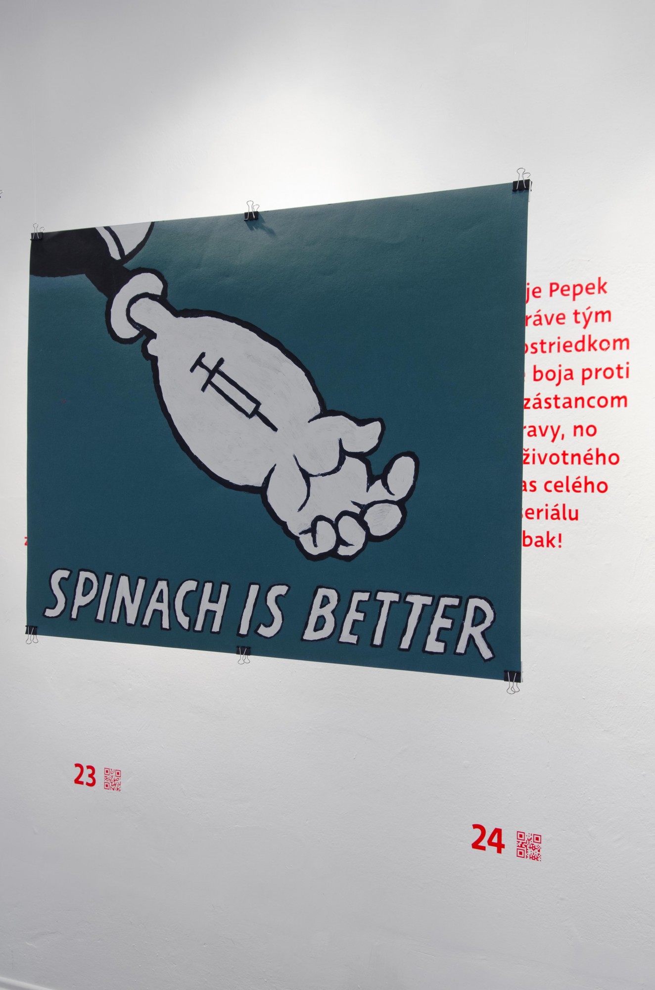 The project “Reflection on Spinach is better” was created during my course Critic - Critical Practice in Graphic Design and for the purpose of the annual exhibition of our Department of Visual Communication at AFAD in Bratislava that I was curating. The exhibition was called Designer–Critic–Editor–Commentator and was opened in Satelit Gallery (gallery of Slovak Design Centre) in December 2014. Students during the exhibition were supposed to directly participate in the selection and reflection of projects from former and current teachers/students of the department.