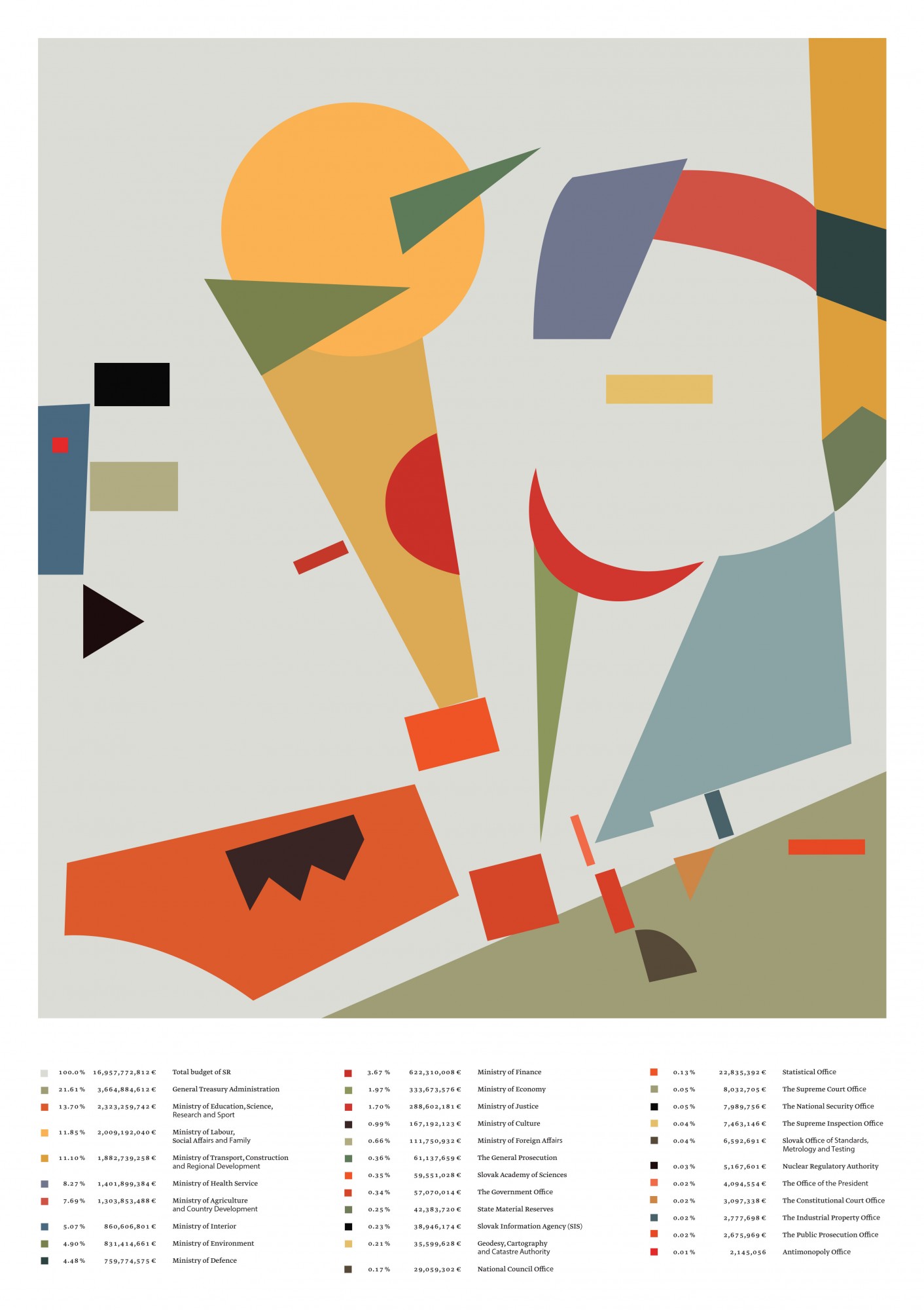 This project was a textual and visual reflection made by one of the students - Pavol Capovčák. Pavol reflected a data visualisation “Suprémat” designed by student Roman Mackovič in 2011 during the project Visible Data - financing of culture. “It would be even more interesting if Roman Mackovič was while working on this visualisation of the Slovak culture budget inspired by some Slovak modernist painter - someone like Ľudovít Fulla - instead of a Russian painter Malevich…”, says Pavol in his textual reflection. He also included a visual reflection to his installation - he redesigned the original data visualisation designed by Roman Mackovič to have the look&feel of our most famous modernist painter Ľudovít Fulla and presented it in augmented reality. The visitors could scan the QR code on the wall above his text and watch the video on tablet or mobile device.