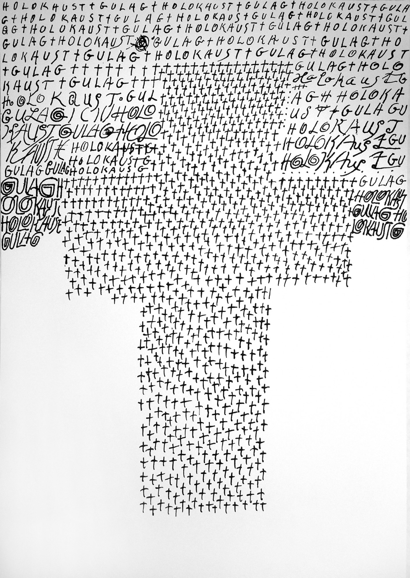One of his critical approaches is a series of posters on a topic of holocaust, where he was reflecting with a visually strong typographic and calligraphic style his attitude towards this topic. This is one of most critical design practices from the slovak design history, therefore it needs to be a part of this archive.