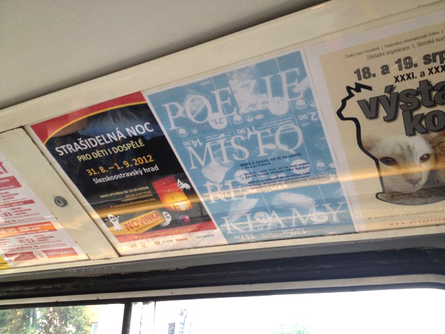 In the year 2012 this project called “Poetry instead of advertisement” ("Poezie místo reklamy") went on in Ostrava with help of the students from University of Ostrava, and in the same year with several students of Academy of Fine Arts and Design in Bratislava during the festival SELF. In 2016 this project traveled to Poland and Noga was tutoring workshops with polish students as a guest professor at the Academy of Fine Arts in Łódź. On all these places, the leaflets were designed and delivered to specific streets in the centers of the cities. Besides that, Pavol Noga even rented few ad spaces in Ostrava’s public transportation to present the poetry of the young poets also in public.