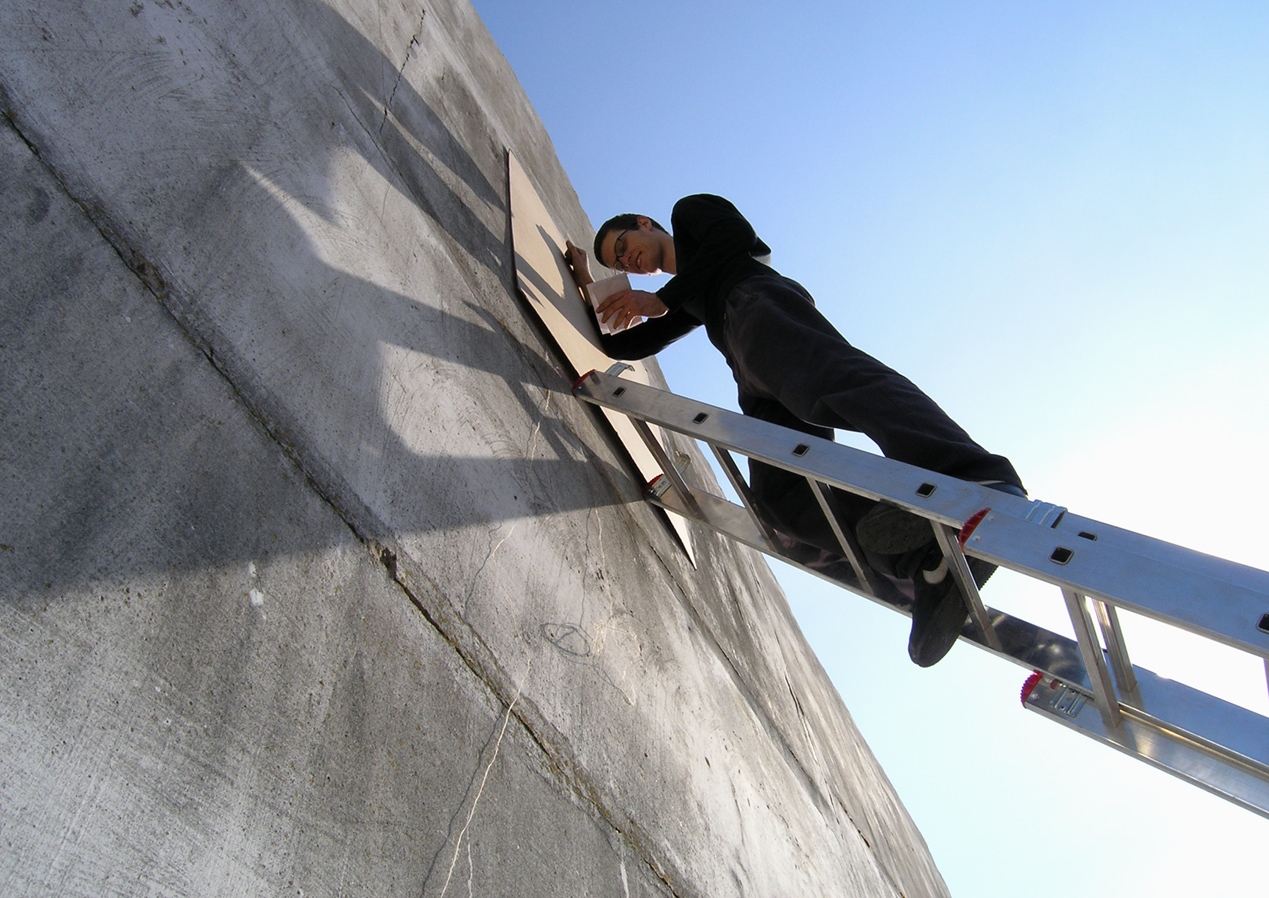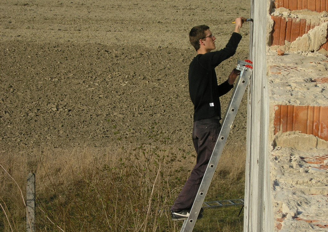 From the very beginning these two artists understood eachother very clearly. Ondrej Gavalda made the inscription and Šymon Kliman took the pictures. It sounds pretty simple. But the creation of the title itself involved quite a complication. I think the font selection was the right choice. The text is readable from a long distance what I think was the intention. During the process of creation of the inscription on the wall, the photographer captured every important moment. This rich collection of photos was presented at the end in a form of a poster.