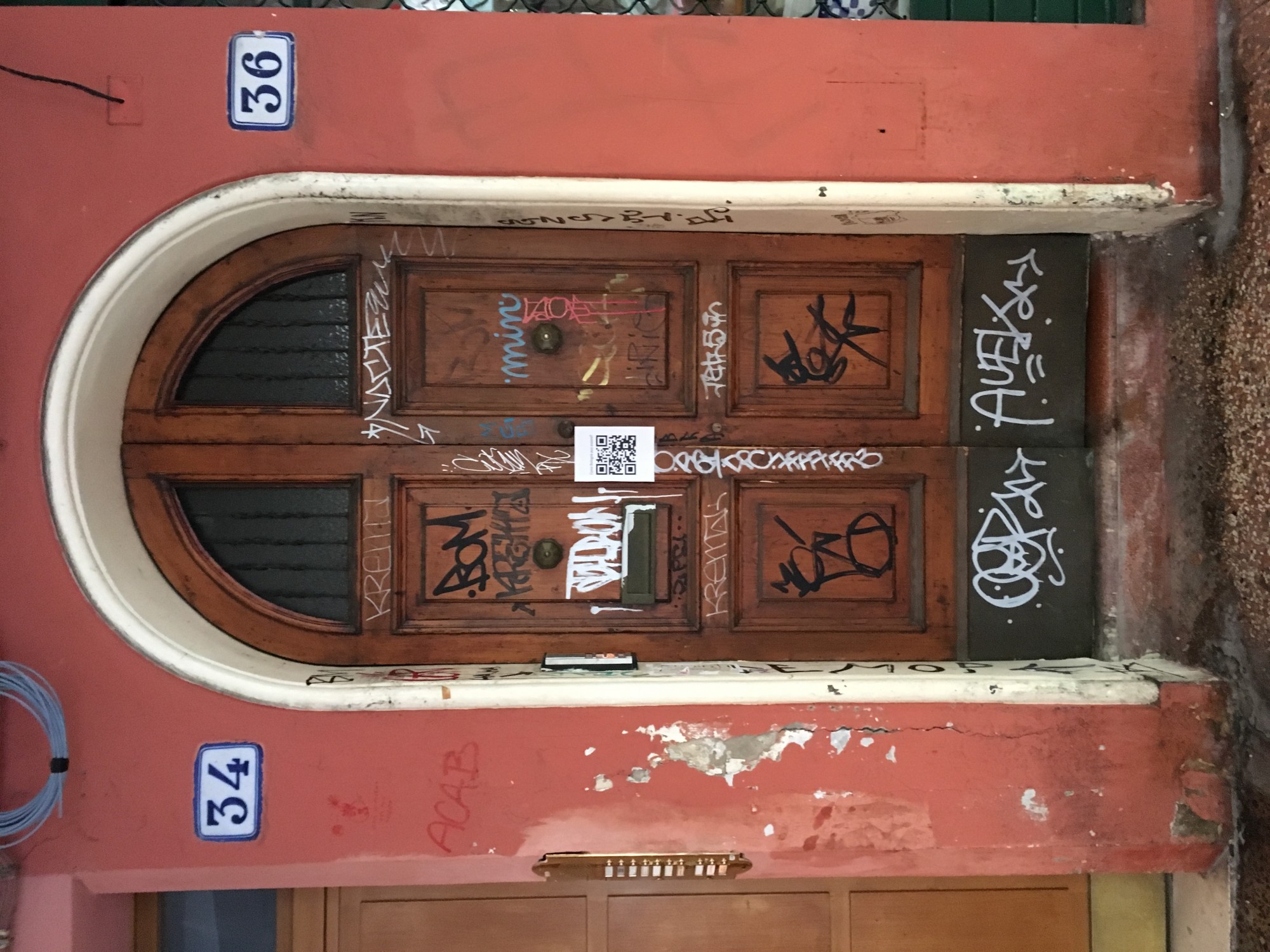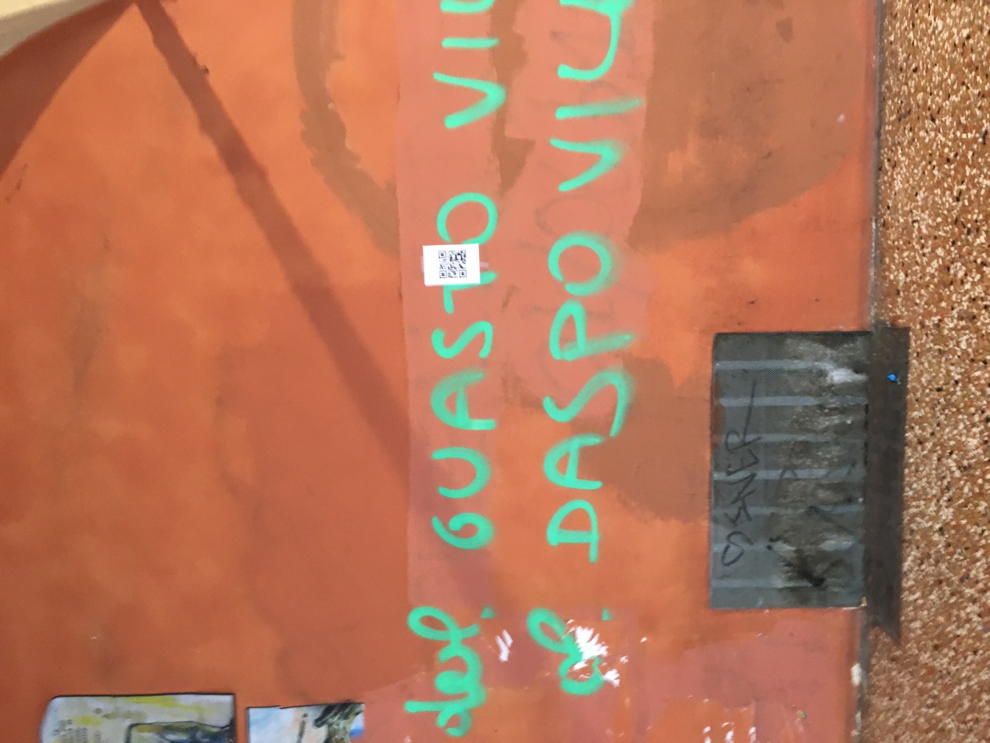 I decided to respond to this problem by creating a QR code titled: „Come e Bologna adesso?“ How is Bologna now? The code transmits to different painted parts of the Bologna. In the link were displayed current photographies of buildigns and next to them photographies of ‘reconstructed’ cleaned up buildings.The QR code was placed on the damaged walls as a small poster. I think that it is interesting for passersby to see instant, although only virtual change. This project should open the eyes of people more and think about the current city condition.