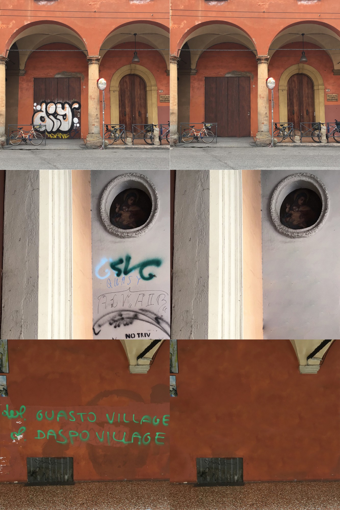 Bologna is a beautiful red city full of historical buildings and proud Bolognese people. A student city full of protests and students from abroad. On the other hand, it is occupied by grafity in enormous amount. Such an amount, that a fine became senseless for this illegal act. Graffiti absorbs the whole city center. A lot of streets reminds a ghetto, not a city with a long history. On the walls, pillars and doors are located various tags and grafity that, unfortunately, do not have any message and are literally unaesthetic scribbles. After a few conversations with older generation I was informed, that the city center is in this state only a couple of years.