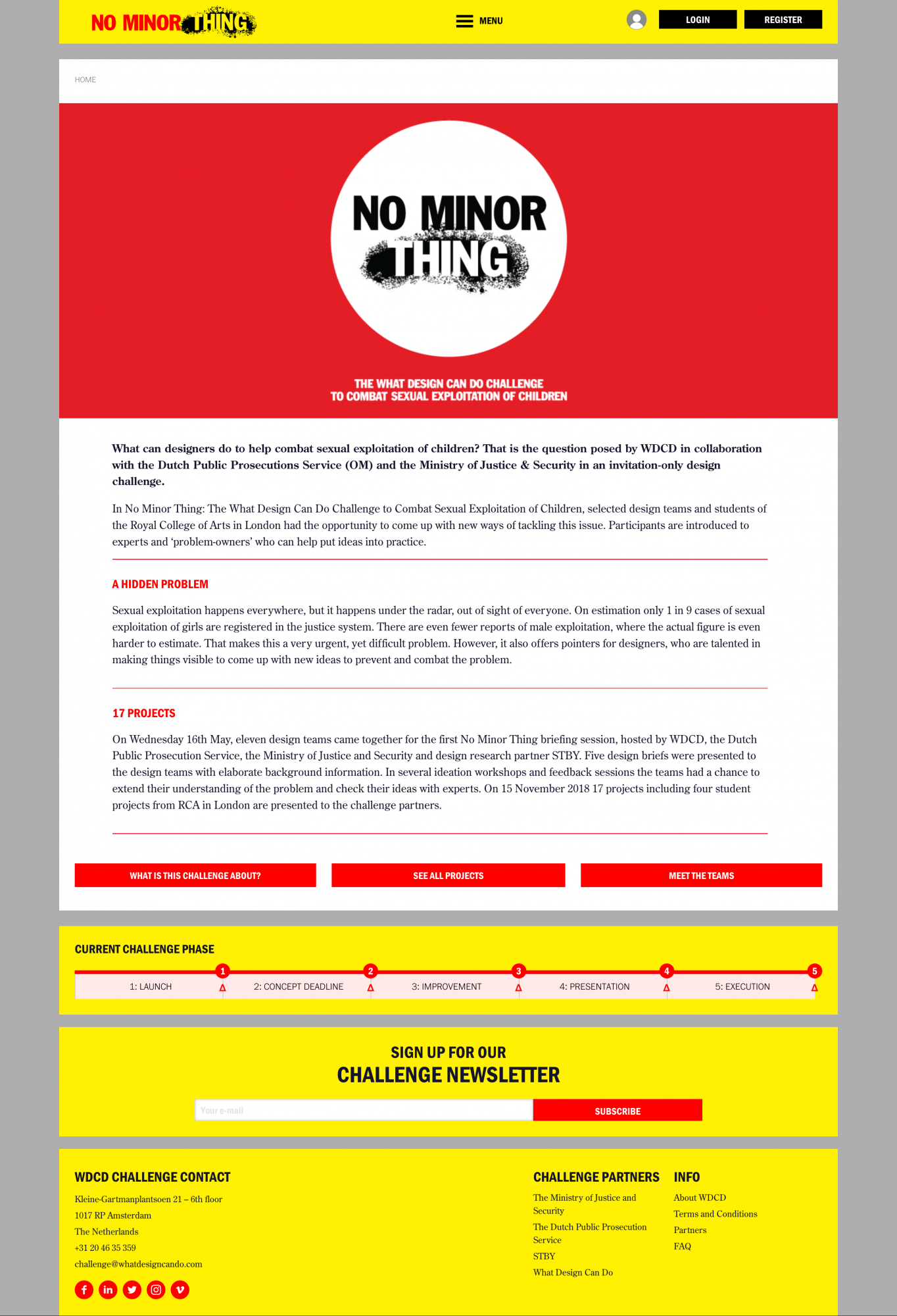 Many of these challenges focus on the climate change and social issues and some of them are based on local collaboration. One of them is No Minor Thing which is about sexual exploitation of children. During this challenge 12 graphic design teams had competed to give best concepts and ideas showing how design can help reflect this issue.