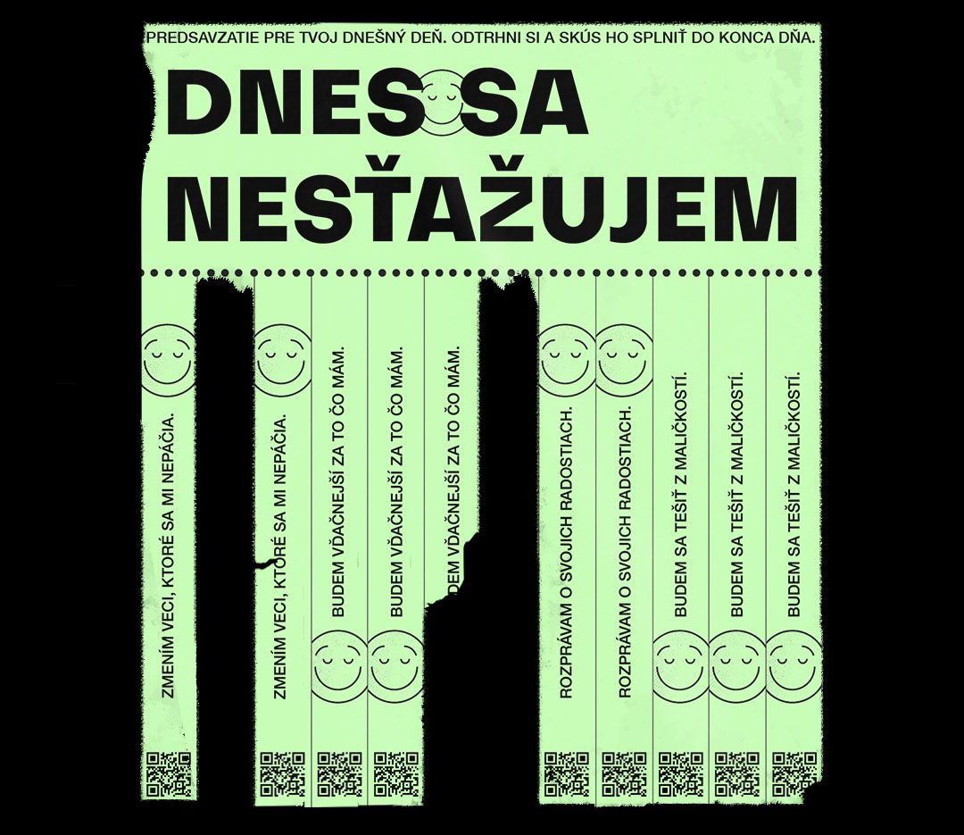 I was wondering how to interact with people and convince them not to complain for at least a day. So I decided to create this kind of a tear-off flyer. In total, there are four commitments they are asked to make until the end of the day. I've tried to keep them simple, challenging people to take small steps towards bettering their day and to prevent them from complaining.