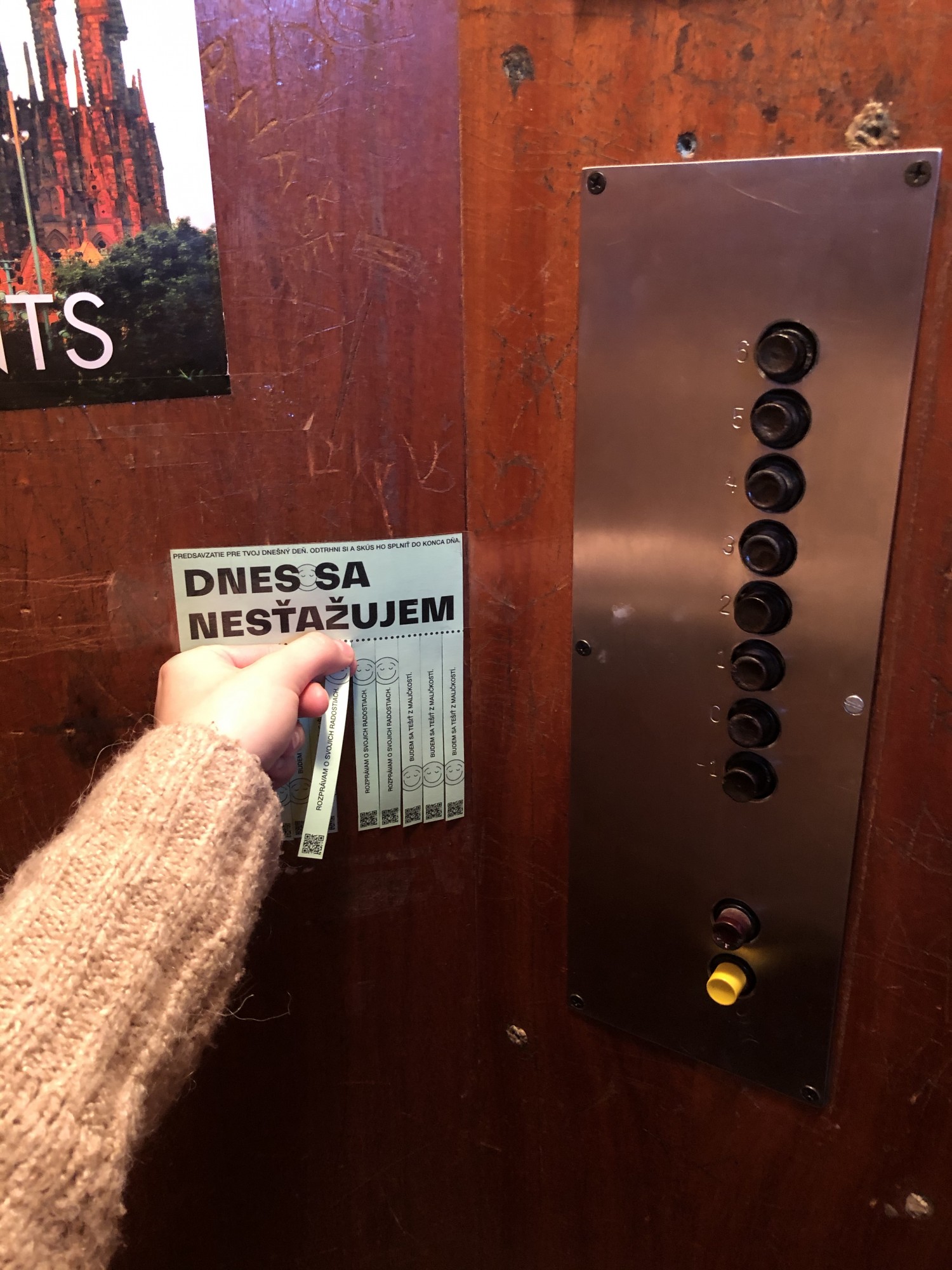 I’d stuck my first flyer in the lift in our building, and was extremely surprised. Not a day had passed and all of the tabs had been taken. Some people, after they were finished, even gave the small papers back for other people to take. When I checked the other locations, the tear-off tabs had also disappeared.