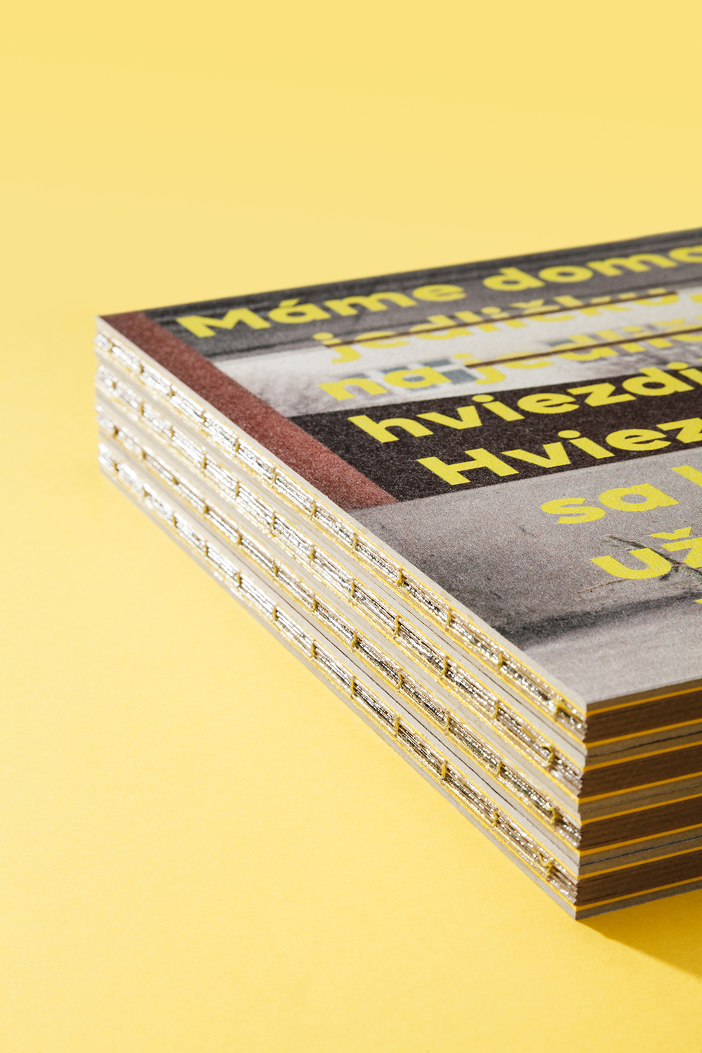 The yellow colour of the cover text was chosen due to its non-association with Christmas, as was the transfer paper, Yellow Creative Board (270 g/m2), and the thread used to stitch the binding. The book contains 56 pages in A4 format, which are printed on SH Recycling paper (140 g/m2). Digital printing on this type of paper created a subtle randomness that affects the quality of the photographs, which was the author’s intention. This small incomprehensibility amplifies its meaning. The book is wrapped in the same kind of plastic netting used to wrap Christmas trees.