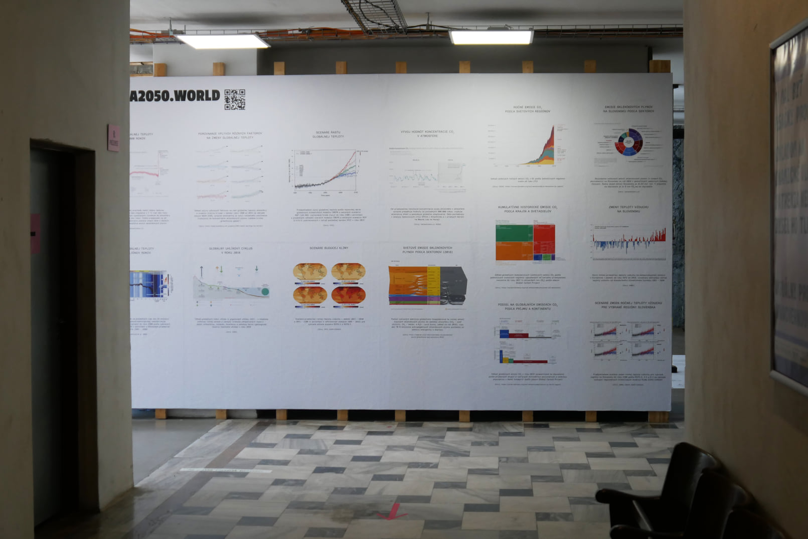 Volba2050.World [Choice2050.World], explores different ways of reading the displays and acknowledges the different intellectual equipment of each visitor. You can walk past the presentations in a few seconds and still capture the main idea; you can start, leave, and come back again, layering your perceptions in parallel with the layering of the exhibition by the exhibition designers: Peter Liška, Boris Meluš, and Ľubica Segečová. Joined by certain professionals who are passionate about climate issues, such as filmmaker Eva Križková and activist Lukáš Osvald, the various entries are inspiring. Environmental challenges await us — whether we confront them or want to pretend they do not exist.