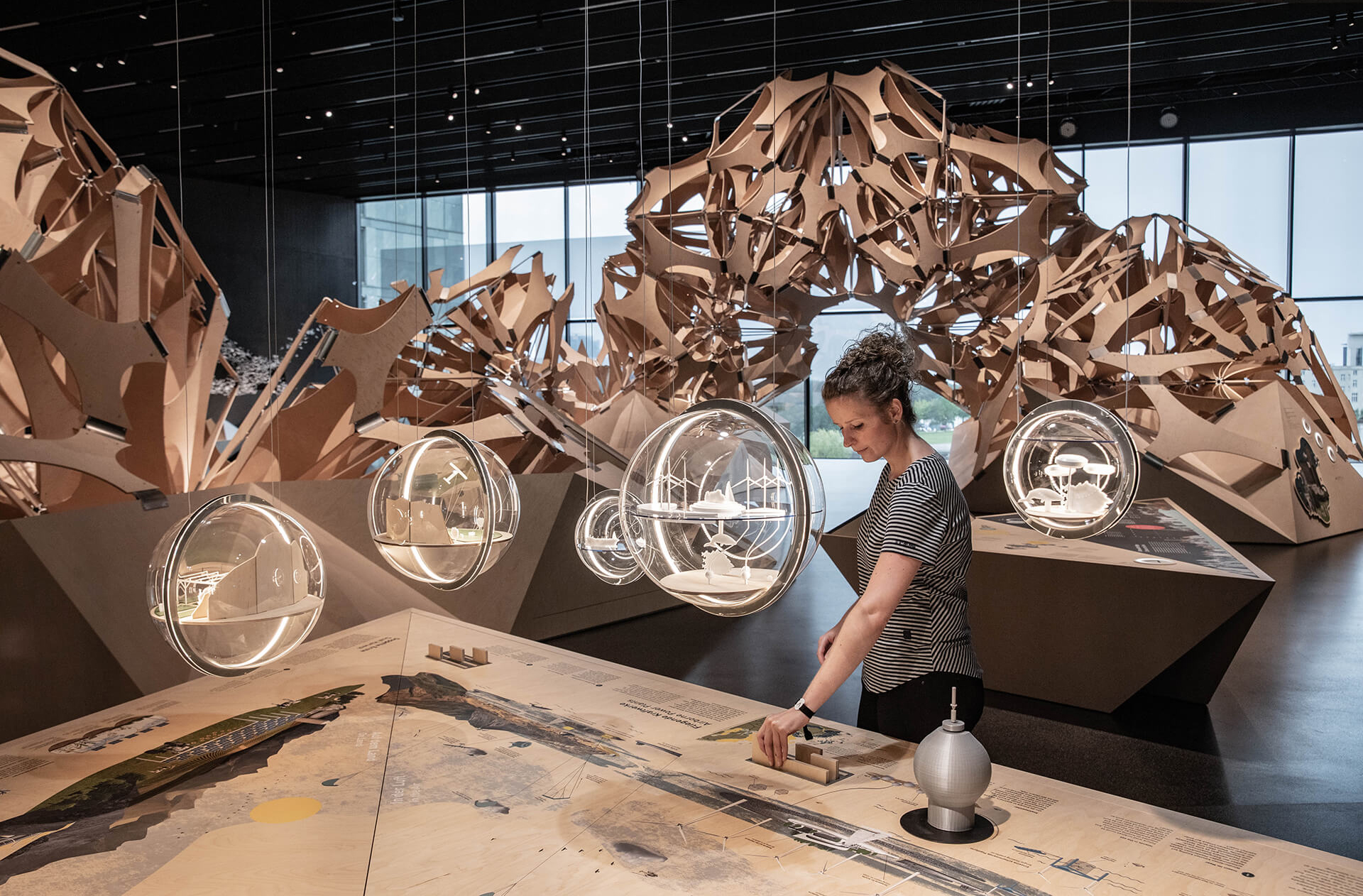 After opening in September 2019, around 100,000 visitors passed through the doors of Futurium in the first month alone, engaging with the venue’s core question: “How do we want to live?” The comprehensive permanent exhibition invites people to explore the vital issues of potential futures inside three separate thinking spaces, each with a specific atmospheric scene: Human, Nature, Technology — respectively: Common Cause, Rethinking Nature, Towards New Horizons. The exhibition design is a result of a collaboration between ART+COM Studios and Schiel Projekt, while Polygraph Design created the requisite illustrations and infographics.