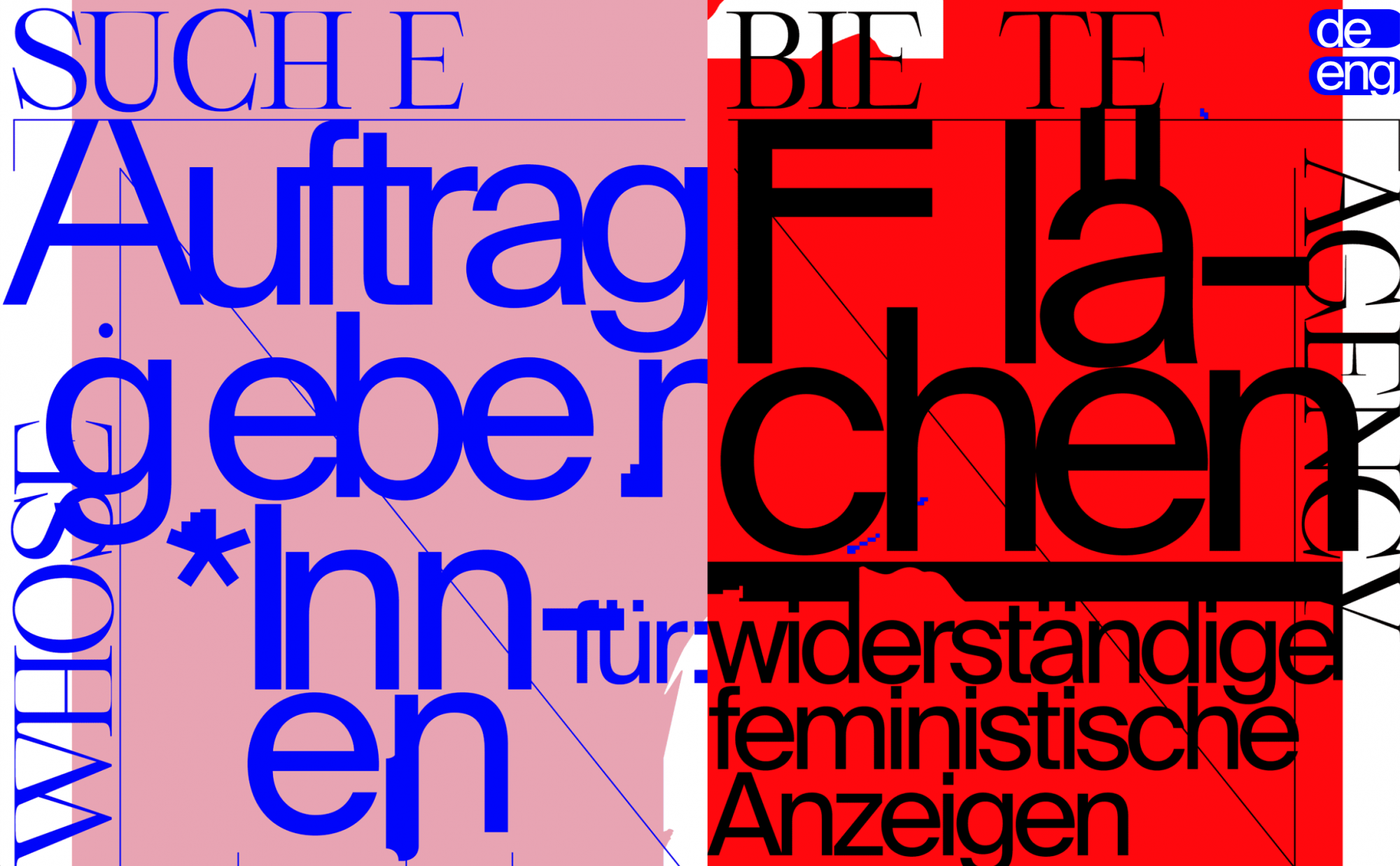 For WHOSE.AGENCY’s open call, Kaiser invited networks, political groups, musicians, cultural producers, and artists from the local and international feminist milieu to author a classified ad with free design and placement. Those who wanted to participate could choose from two ad categories: WANTED and OFFER, and could select their own message — whether it was to demand a salary for reproduction work, a personal ad, a political group statement, or a call for donations.