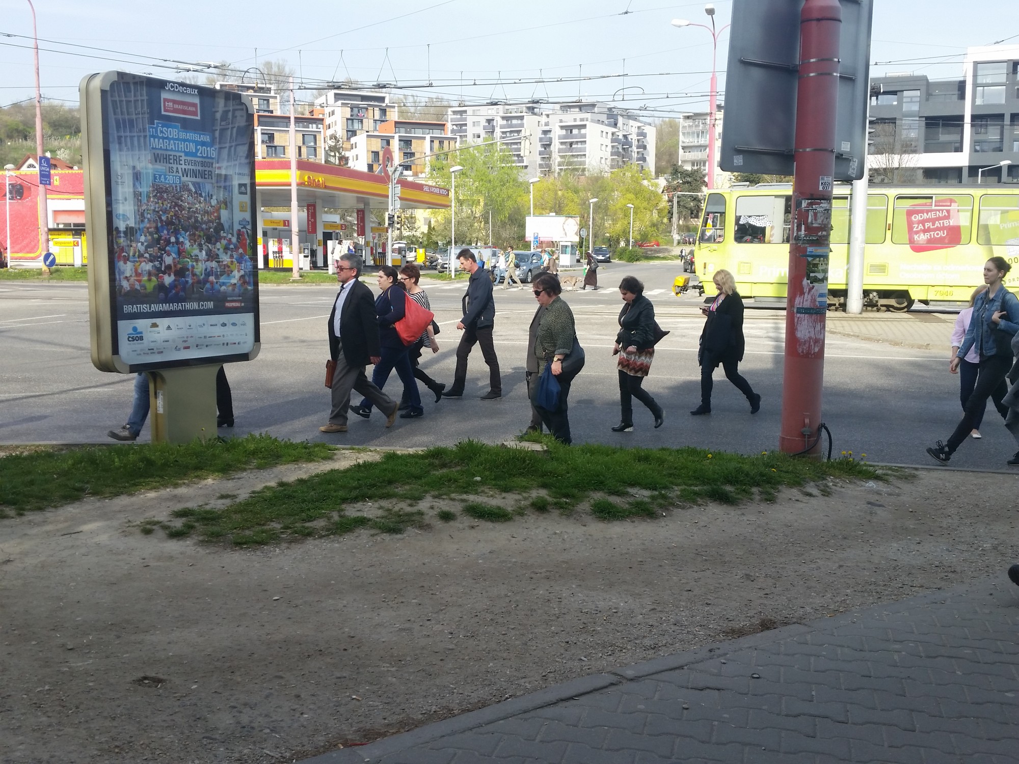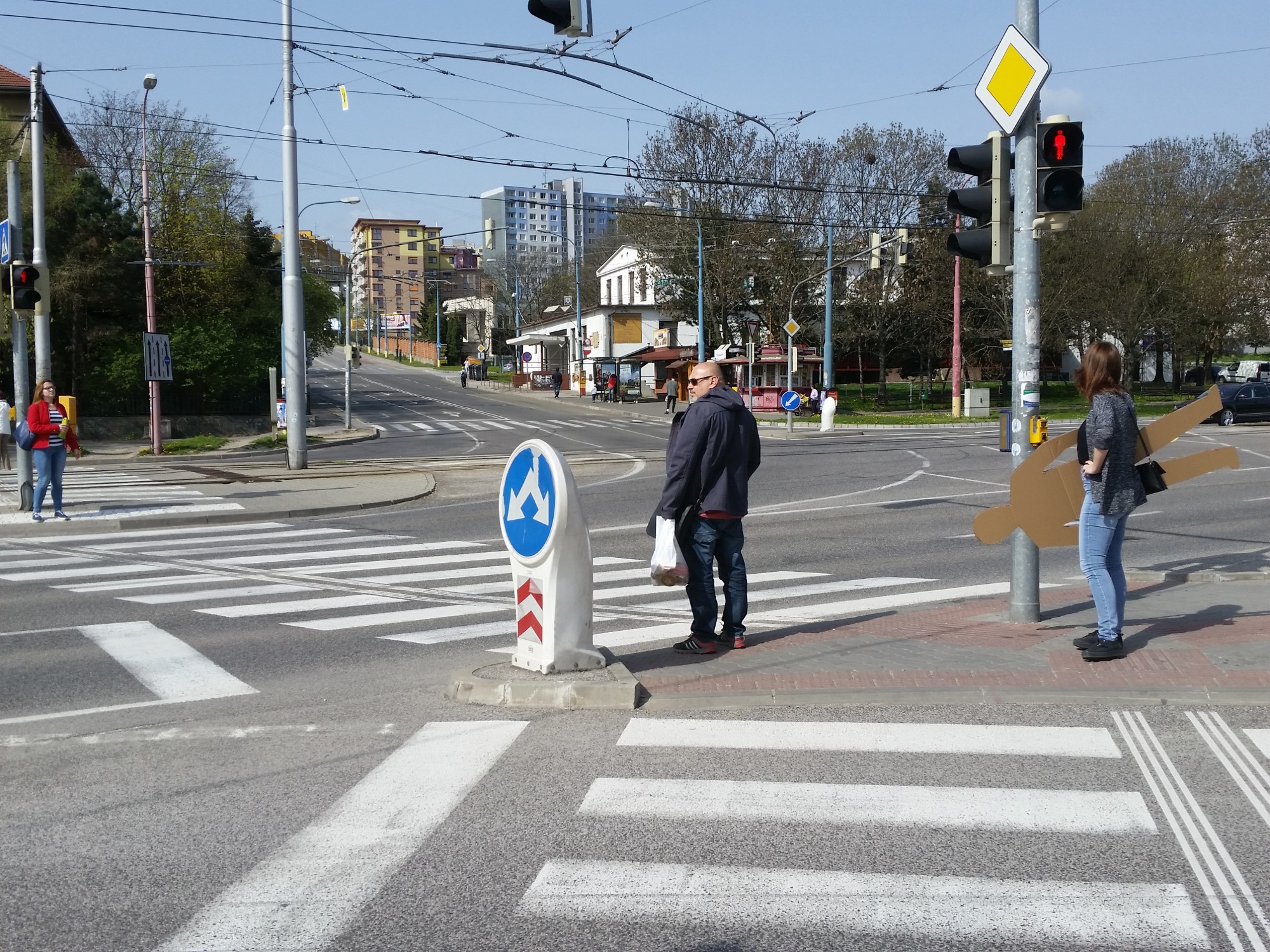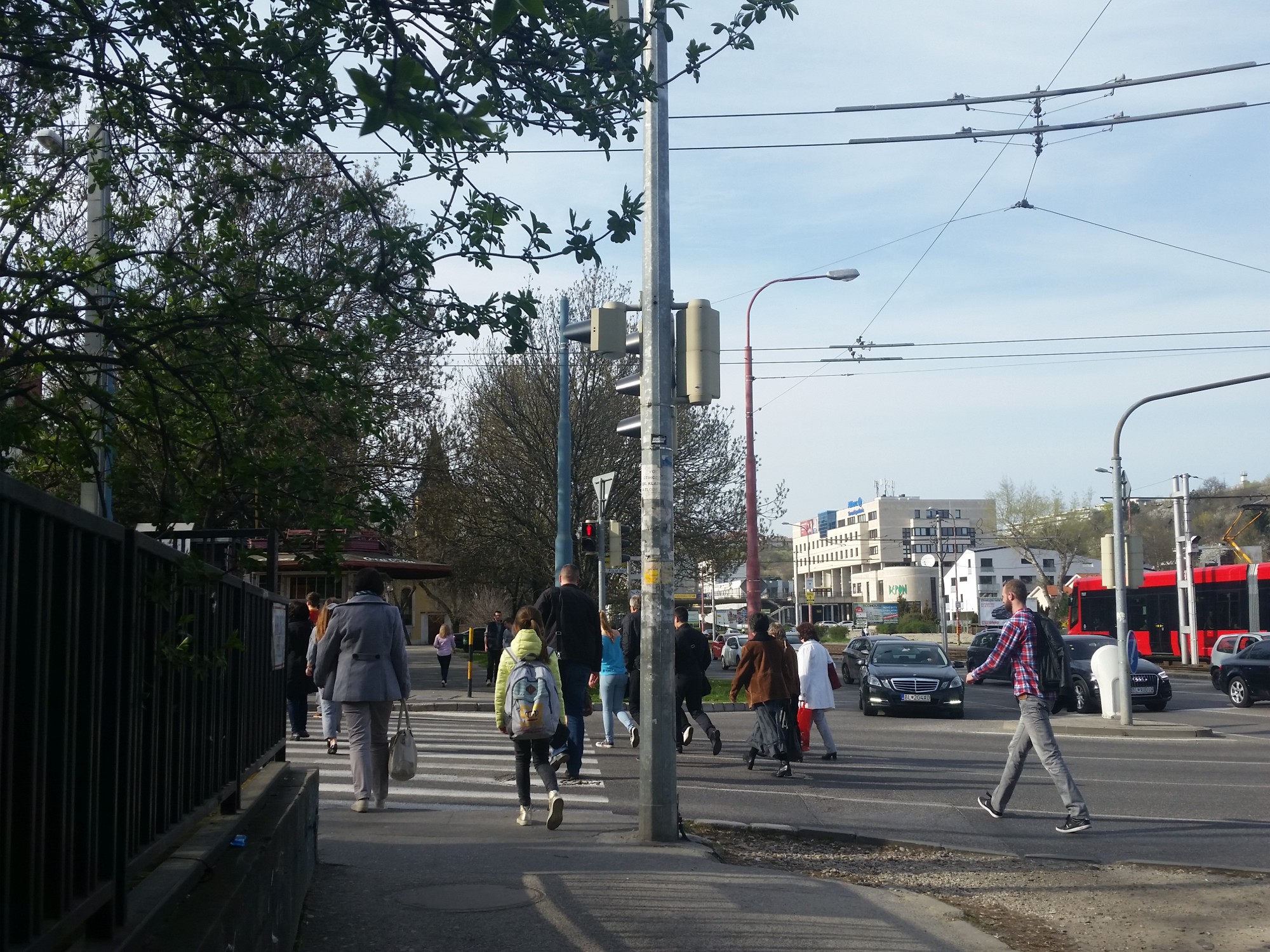 Molecova intersection is a complicated traffic junction. It is a spot where a dual roads from Karlova Ves and Dlhé diely district in Bratislava get together, a place where trolleybuses, busses and trams stop. Especially during the morning and afternoon rush hour, this area is very busy. Pedestrians who transfer between public transport stops must pass through the intersection, the green traffic light is too short, so they often run across the road between the cars to catch a pubic transport service.