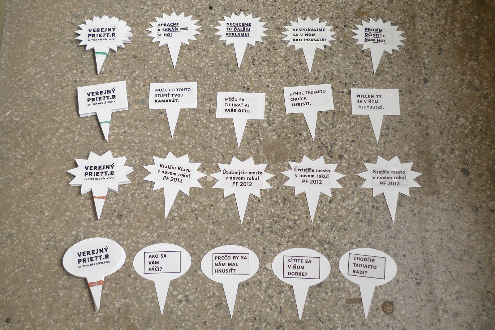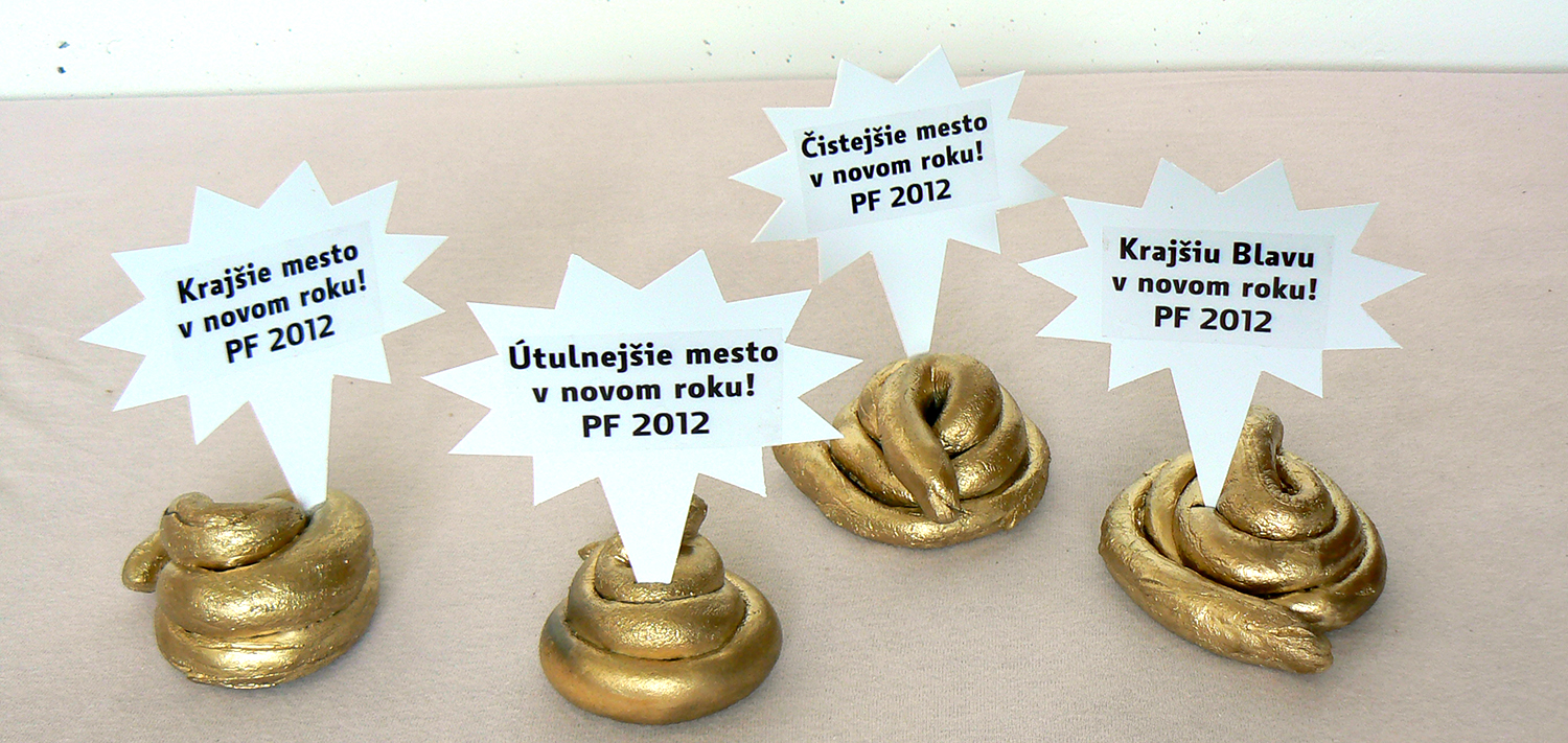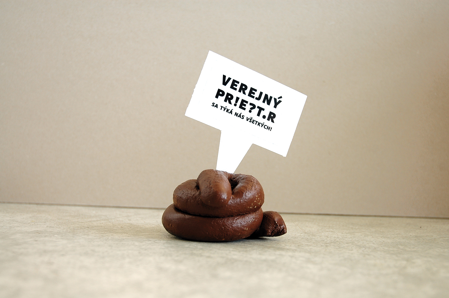 I created a campaign specifically focused on those who are moving in public places. I placed all sorts of signs with messages on the selected areas in Bratislava that are most problematic. I have conceived four different levels of communication - calls for action, questions, announcements and PF wishes. The headlines had reflect a variety of problems - from affordable queries, questions if people feel good, to appeals not act like pigs. As a main medium of communication I created a object that looks like a dog poo. It should attract the attention, make people stop and think about their behaviour in public space.