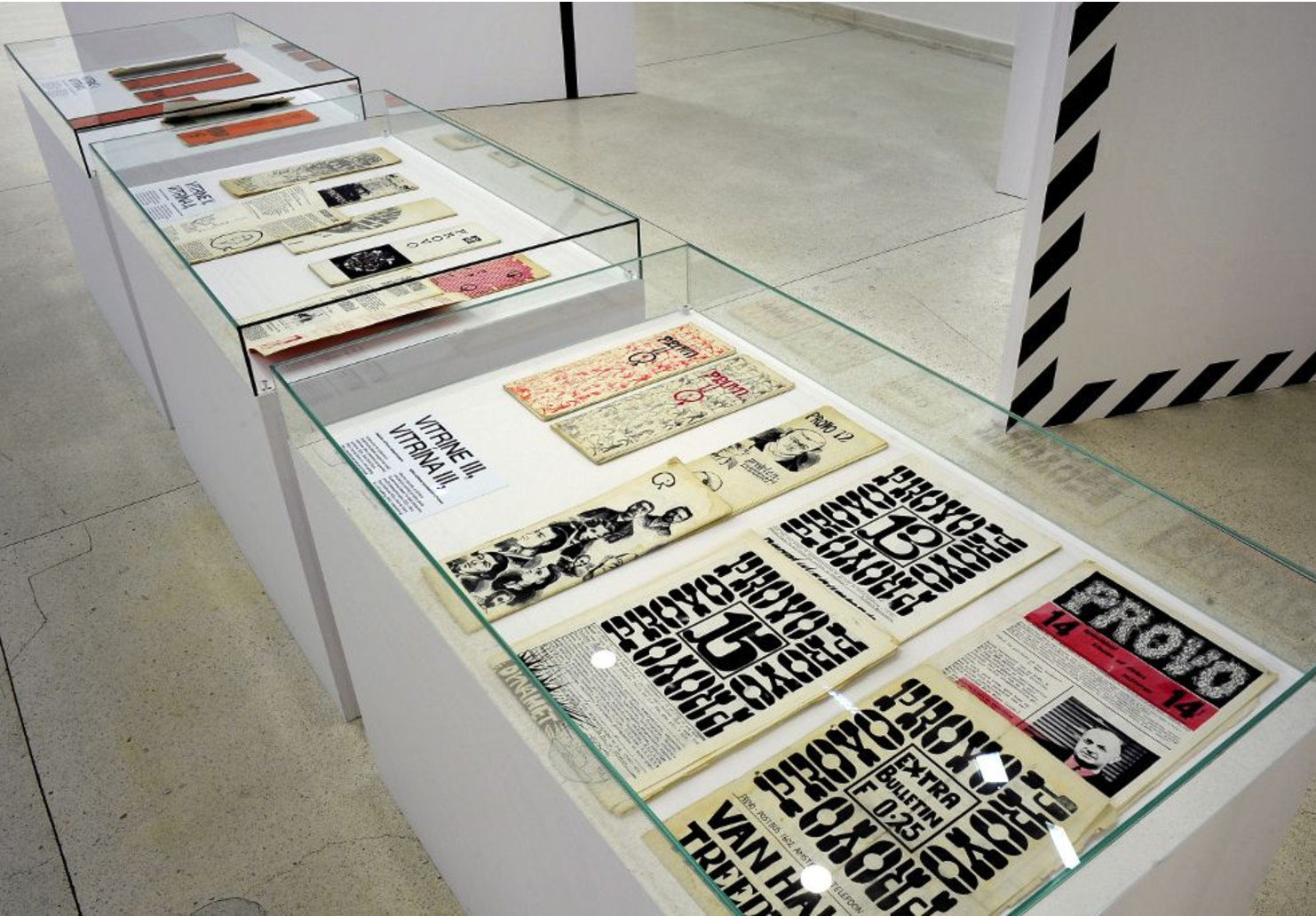 Even the exhibition is conceived as archive created by various materials, they keep their typical visuality of sans-serif typeface with nice fusion of features from Provo movement, which make a contrast between pure typeface design and artistic forms.
