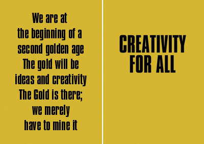 My work deals with the relationship and interaction I see between text and image. This is something that has fascinated me for years and which now, thanks to the developments in communication technology, is becoming increasingly current and much more normal. We live in the image culture, but when we think of an image we quickly conjure up a photo or a painting and a relationship is made with art. But art is only a small part of what I call today’s image culture. Image culture is not a discipline, but it does have its own dynamic. I think that in a hundred years art and design will have a much greater impact in society than it has had thus far, except we no longer call it art and design."