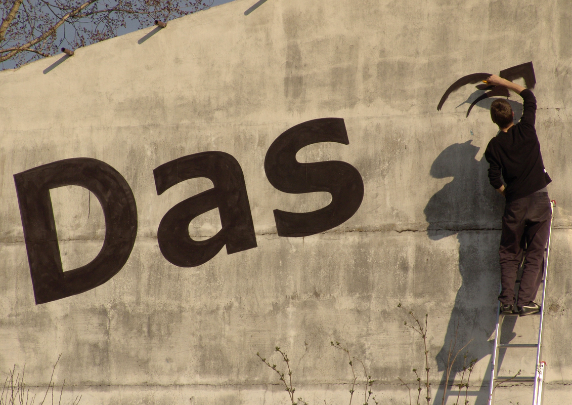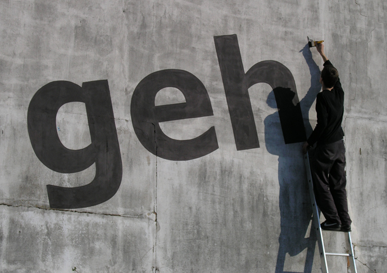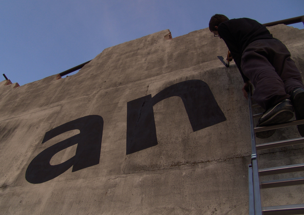 From the very beginning these two artists understood eachother very clearly. Ondrej Gavalda made the inscription and Šymon Kliman took the pictures. It sounds pretty simple. But the creation of the title itself involved quite a complication. I think the font selection was the right choice. The text is readable from a long distance what I think was the intention. During the process of creation of the inscription on the wall, the photographer captured every important moment. This rich collection of photos was presented at the end in a form of a poster.
