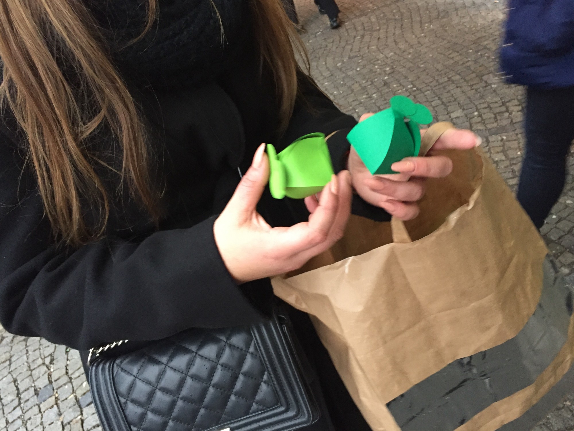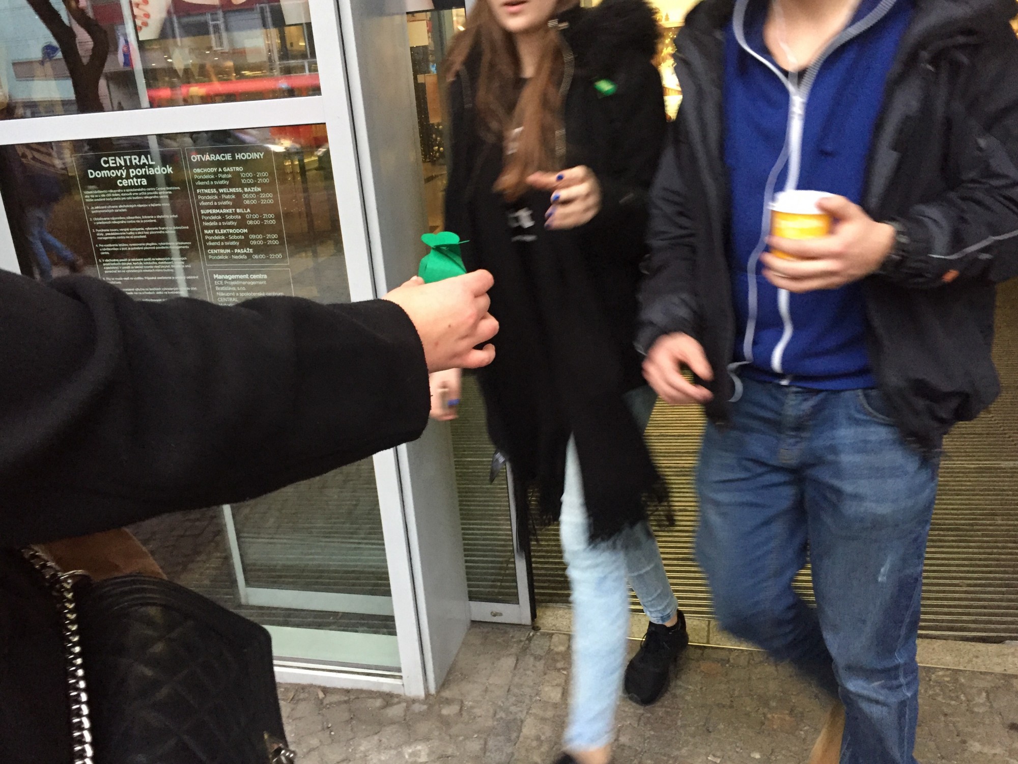 My project should bring to people happiness and joy. After I met them on the streets of Bratislava exactly this happened as I expected and hoped for. I wanted to give little joy to people by giving them a little box that contains a happy message inside. The close-down of the box was in a form of four-leaf-clover, what is the symbol of fortune and happiness. Many people didn’t look at me, most of them didn’t understand why am I giving free stuff, they were wondering.