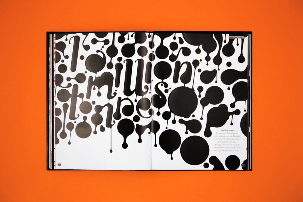 There are interesting critical projects you can come across when you are scrolling Barnbrook‘s portfolio. For example, ,,The Little Book of Shocking Eco Facts“, publication, which presents facts, not fiction, about the current state of our planet. In this work was Barnbrook studio really consistent, they showcase open source movement.