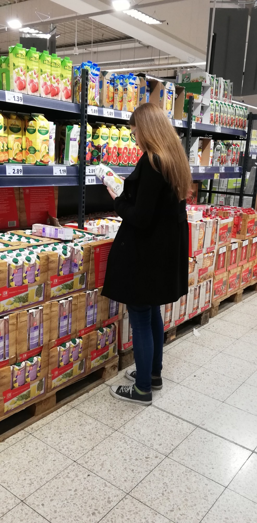 In both grocery stores, in which I realized my project, I tried to discreetly monitor people's reactions on it. Those who just passed by did not pay attention. Those who took some products placed near by "mine" mostly noticed it, but after few seconds of stare, they continued shopping. I noticed one young lady who grabbed juice with my sticker and red the etiquette. Later I asked her about the juice with sticker and she told me, that she was checking content of the product according to sticker. She said, that she also noticed sticker on instant mushroom soup. She ackowledged these information as useful, bud as she added, it does not deter her from buying, because she likes the taste and values the low price. These two aspects are more important for her than the quality and amount of ingredients. I hope that from now, she will buy this soup with awereness of what is inside. Everyone has its own values and priorities, but do not always has proper information. I just wanted to give people information, the choice is up to them.