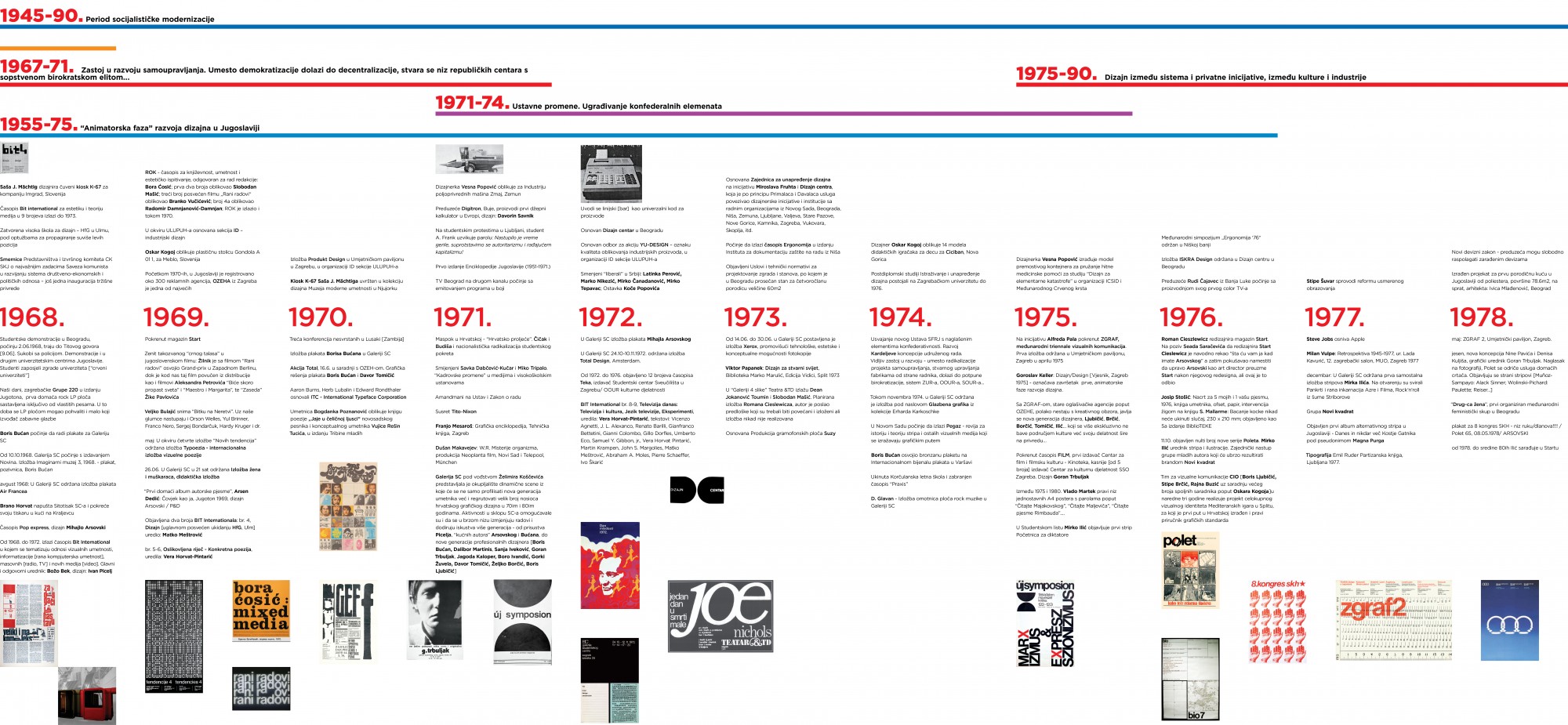 The outcome of the project included an exhibition featuring talks, workshops, and a publication containing 13 collected essays with “theoretical insight into the project” andpublished by Autonomedia. As part of the exhibition, there was aspatial intervention of two art and designers’ collectives, Metahaven and Société Réaliste. Among the authors of the essays, there were works of: Jean Baudrillard, Igor Chubarov, an interview with Jerko Denegri, Branislav Dimitrijević, Hal Foster, Dejan Kršić, Nenad Malešević, Metahaven, Borislav Mikulić, Barbara Predan, Jacques Rancière, Feđa Vukić and WHW collective. The editor was Branka Ćurčić. Workshops and educational-collaborative programmes were organised and realised by two initiatives: OpenDesign Studio and A3.Format project.