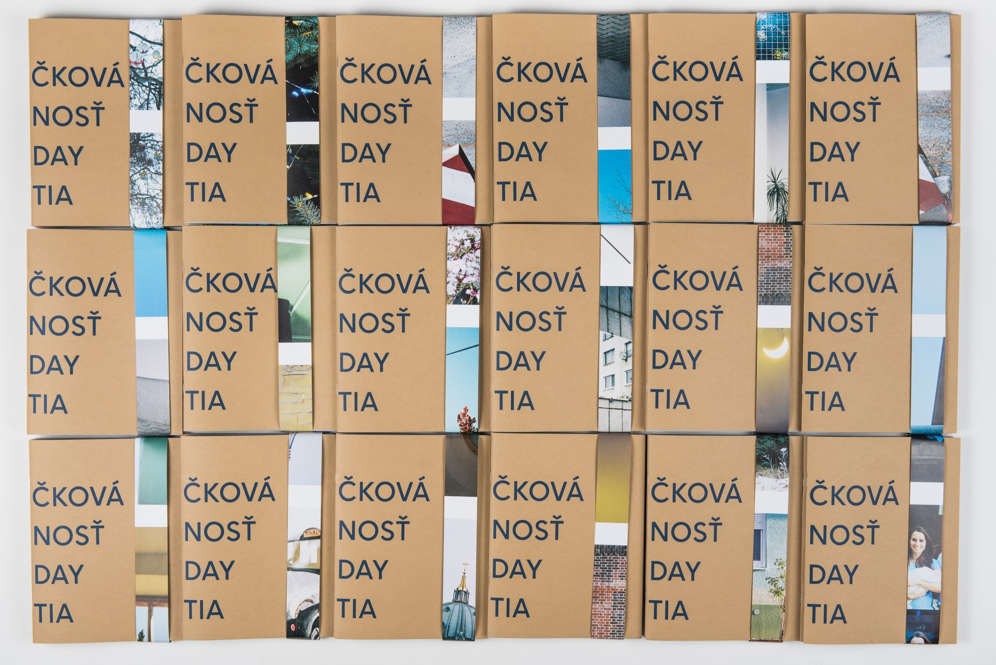 The book cover quotes from the content. By linking and shuffling the English and Slovak titles, a new playful combination arises which underlines the tone of the photographs inside.