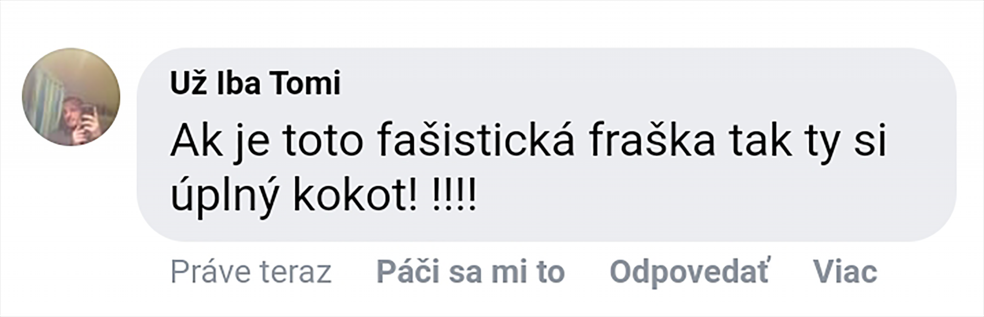 Although I like the online action in FB neo-nazi groups, it could be expected the ultra-right followers will not respond critically to it. On the one hand, I think it's always great to mock these guys and spice up their daily life with some irritation. On the other hand, it probably requires more sophisticated ways of persuading to change their opinions. I guess this project works the best in public space after all, where it can help explain the connection between Kotleba's party and neo-fascism to potential voters who fall for Kotleba from sheer disillusion.