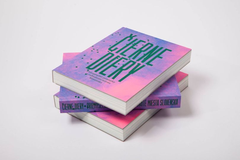 I think the first book was very interesting and inspiring as well. The title of the project is Čierne diery (The Black Holes) - Industrial monuments and forgotten places. The book does not have any page numbering to simulate the feeling that the team had when exploring the places. They had used locations of the monuments to help orient readers instead. The heavy font and the cover made of thick carton makes the book look heavy and important. It was printed without the black colour and authors used dark blue instead. That made the photography and graphics inside the book standing out.