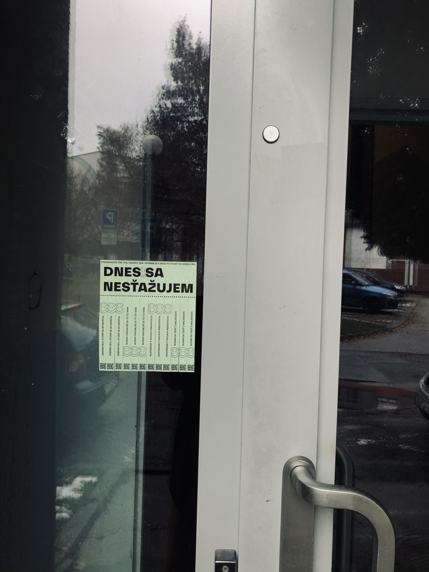I was wondering how to interact with people and convince them not to complain for at least a day. So I decided to create this kind of a tear-off flyer. In total, there are four commitments they are asked to make until the end of the day. I've tried to keep them simple, challenging people to take small steps towards bettering their day and to prevent them from complaining.