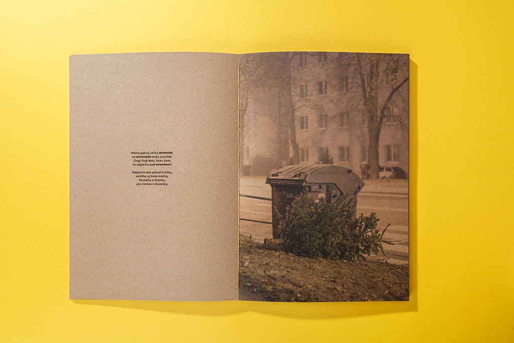 Translated from Slovak, this book is entitled The Consumable Tree Dwells. Into the Social Ritual of Discarded Christmas Trees. It analyses a phenomenon that appears in the streets of Slovakia (and surely all other so-called Christian countries) every year — after the New Year celebrations are over, rubbish bins fill with Christmas trees, which in this context can be understood as consumer goods. Along with these discarded trees, the sacral atmosphere of Christmas disappears and a melancholic image is created, free of the emotional charge with which Christmas is oversaturated.