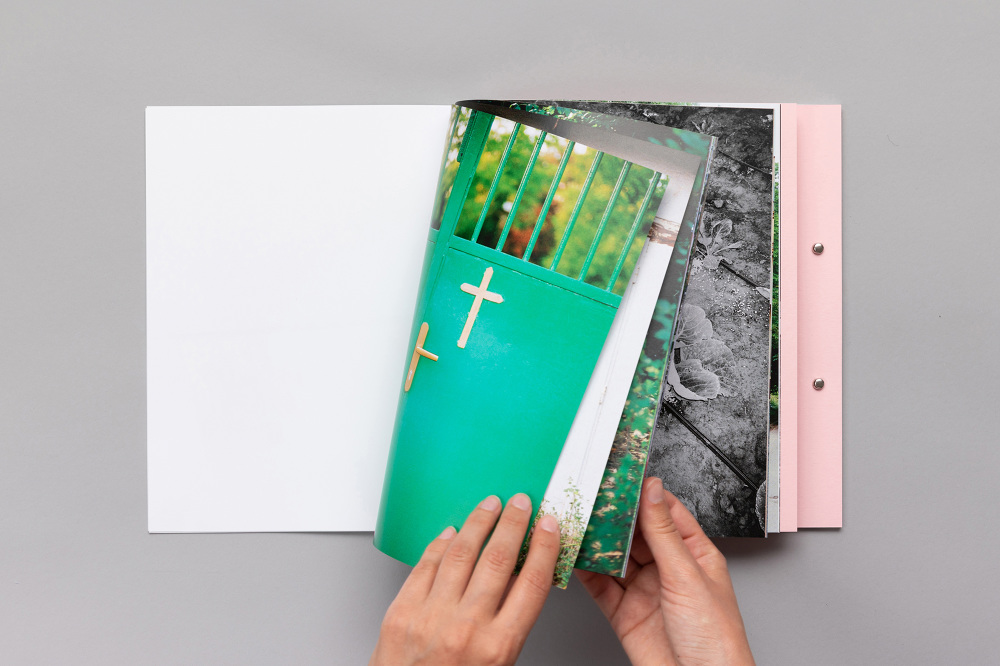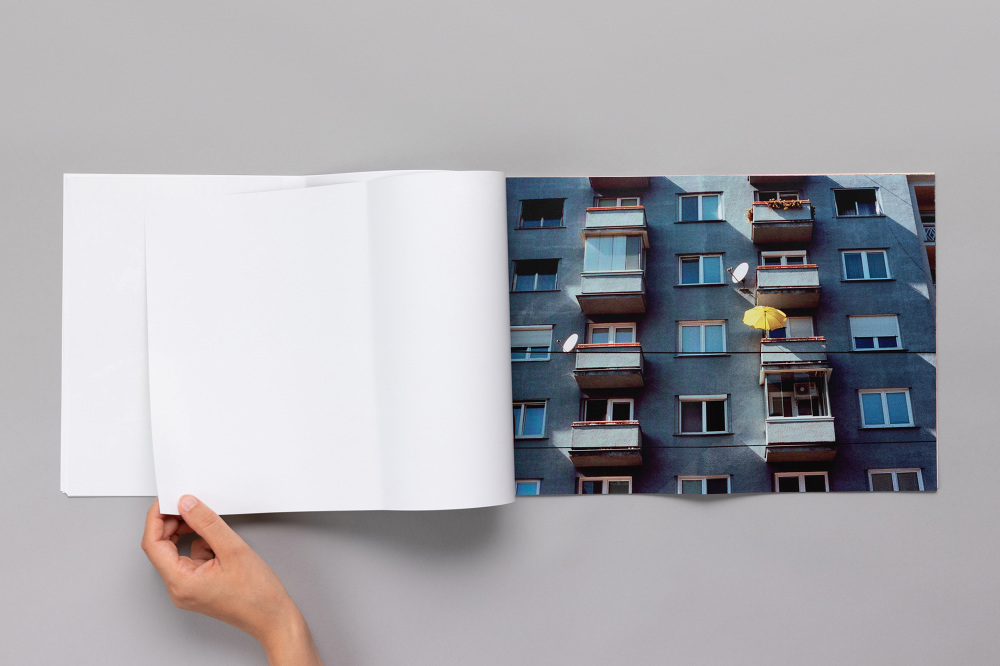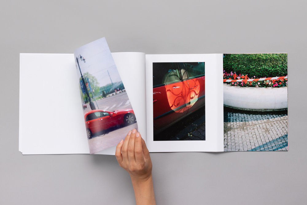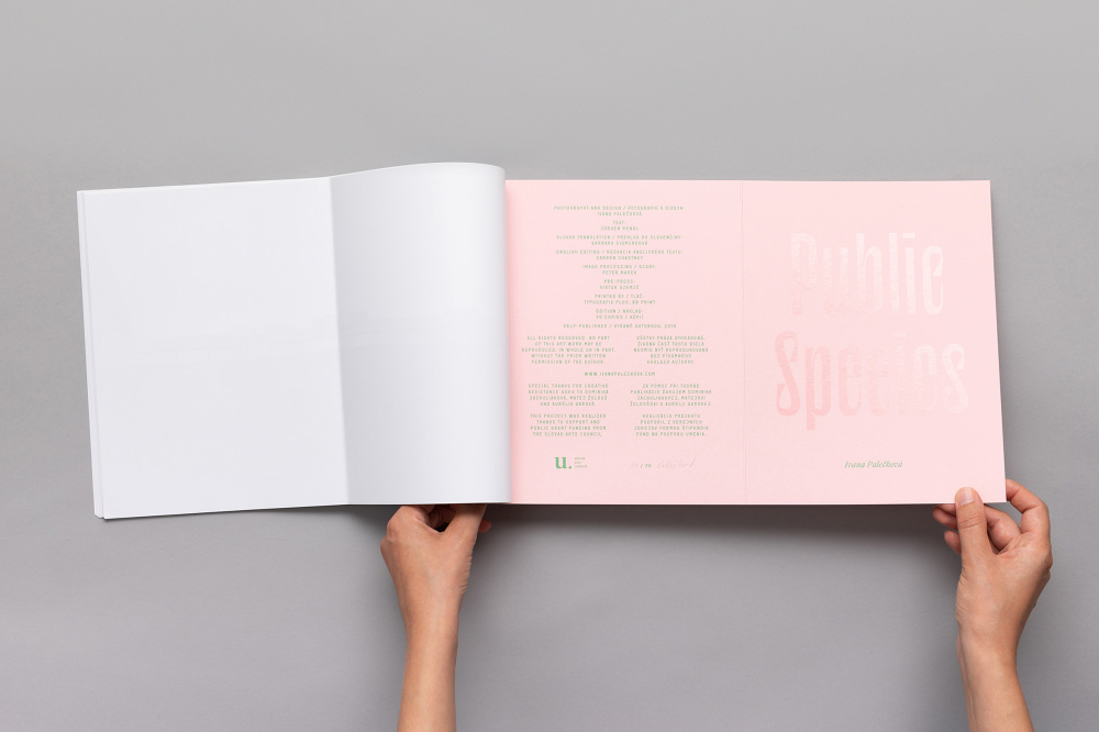 Public Species, a photobook by Ivana Palečková, contains the author’s photographic and design work. A series of photographs focuses on the public space and the way people shape it. The book comprises a landscape format that can be folded in half, the design suggesting a multilayered reading of the message — like moving through a city at a different speed or in a certain mood. The first way to go through the book — when it’s folded in half — represents a quick walk round. In some photos, only fragments are visible; while others remain completely hidden and some are fully visible.