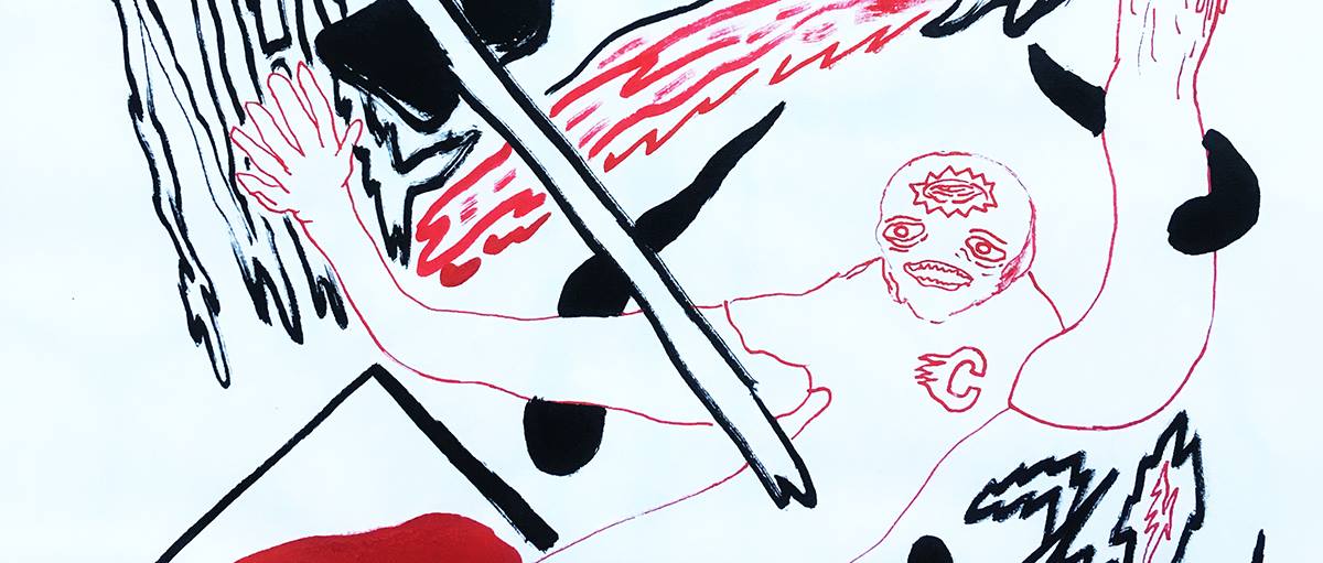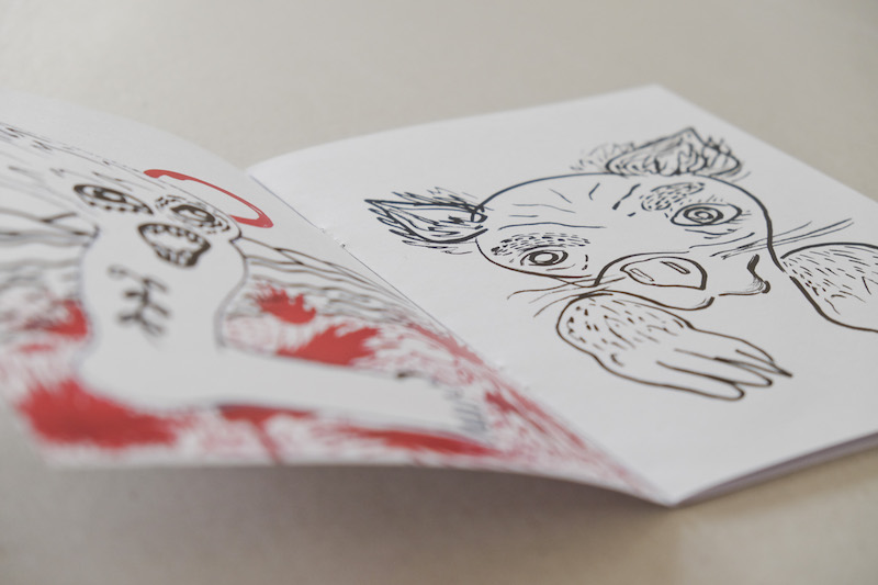 The puzzle is carefully crafted with references to the origins of graffiti, ancient Mexican culture, punk, metal, and more. Kolenčík plays with texts and with his own typefaces, which all merge into illustration — you cannot establish a clear border between genres here. The complexity of visual material refers to the complexity of today’s problems. The name of the exhibition openly refers back to Baudelaire.