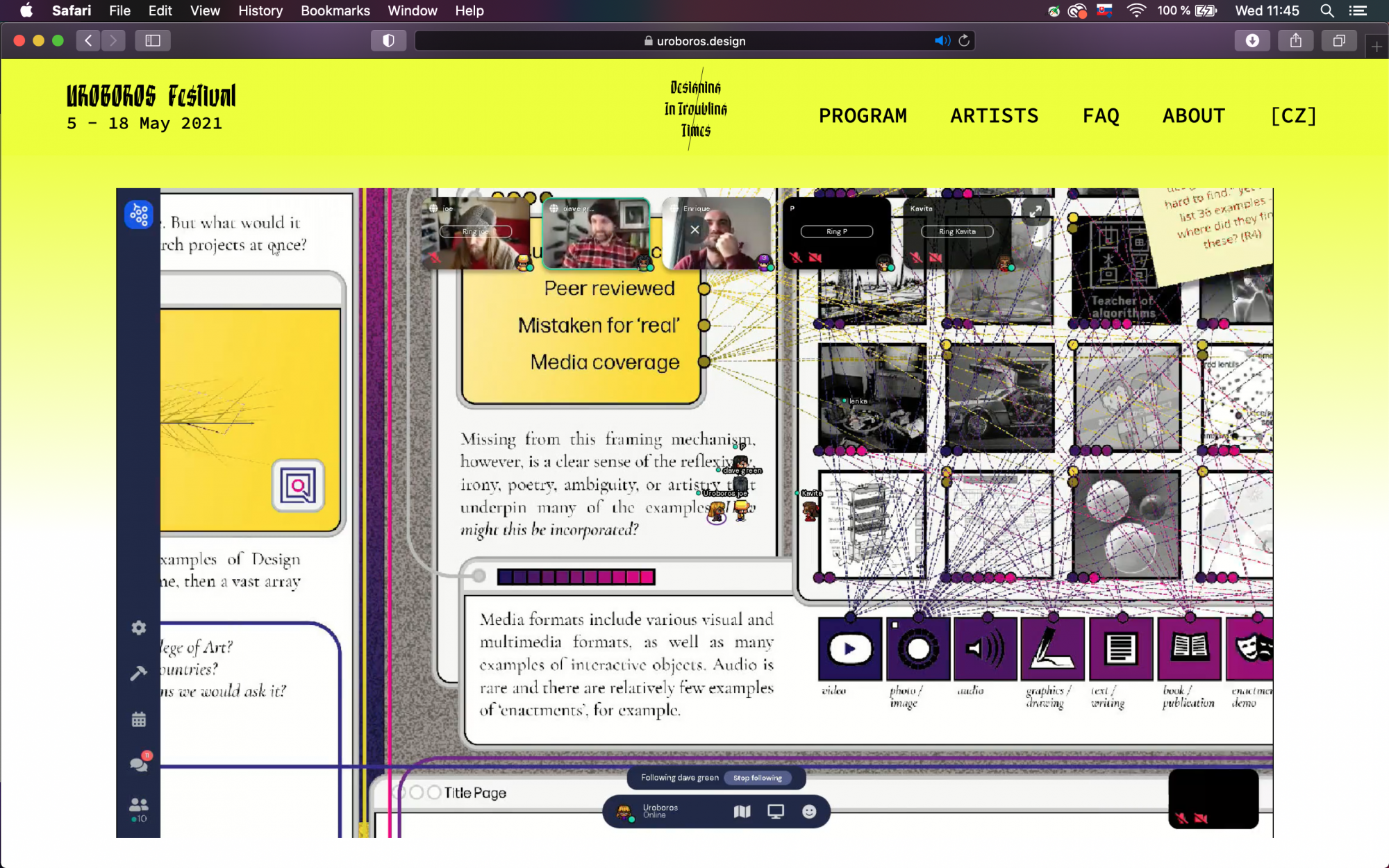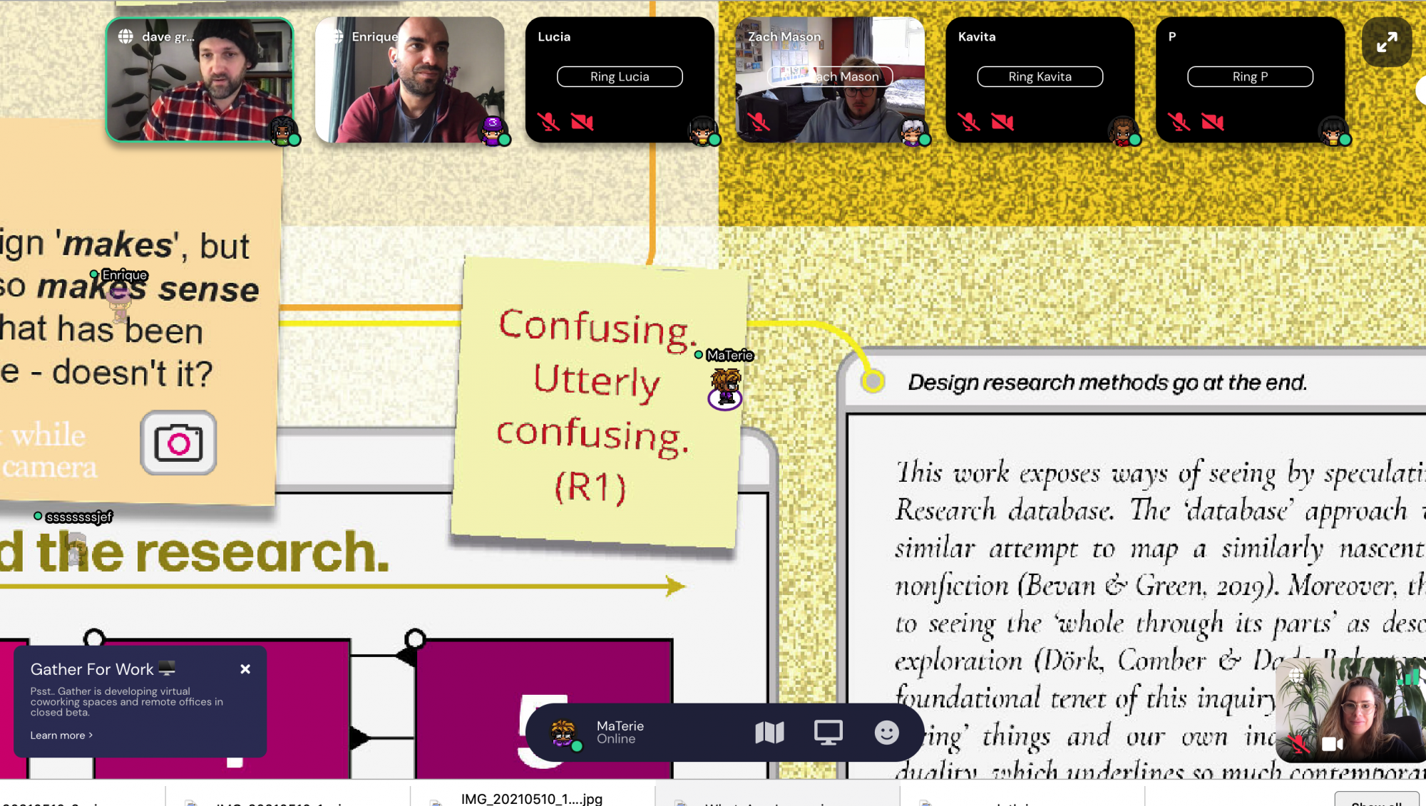 One morning, during Uroboros Festival 2021, we met in a non-conventional online space standing on a rejected paper from the ACM IDS Conference along with its authors, and initiated a digital stroll in which to collectively murmur. Design researchers Joseph Lindley, David Green, and Zach Manson built this space in gather.town and brought us together to share our perspectives on fluidity, data, time, and metanarratives. The design was based on the manuscript ‘Ways of Seeing Design Research’ — a reflection on state-of-the-art design research as a discipline.